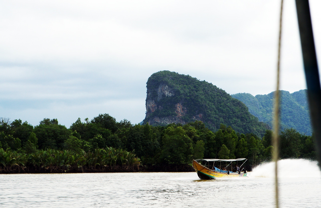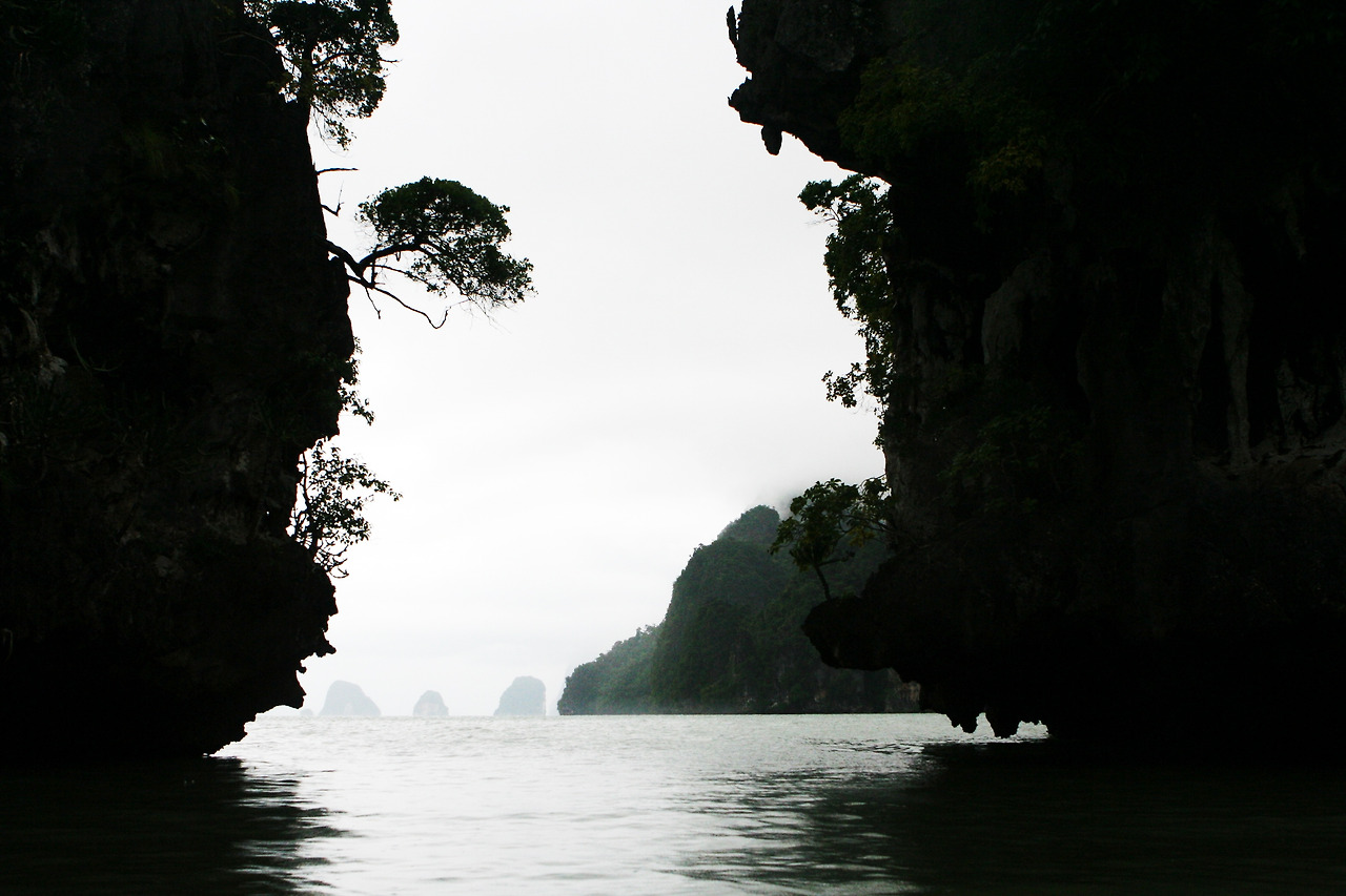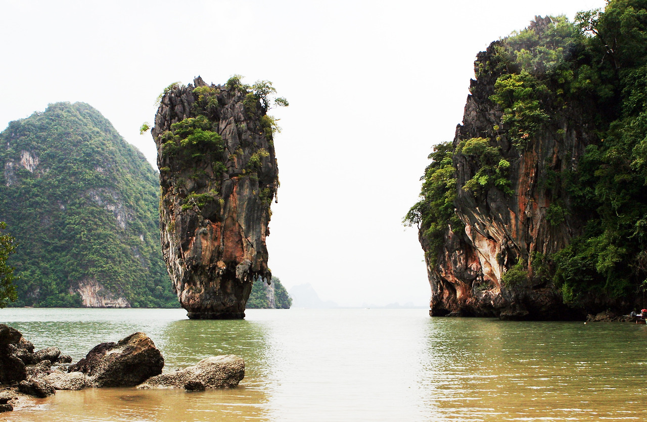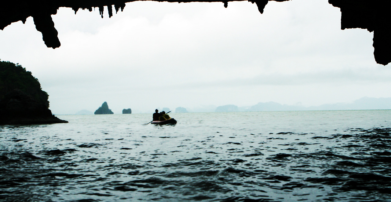 마야베이(Maya Bay) 바로 앞 바다에 기다란 역삼각형의 바위를 꽂아놓은 듯한 멋진 풍경이 이목을 집중시킨다. 모든 관광객들이 이 경치를 배경으로 사진 찍기에 여념 없다. 팡아만 주변에서 카누에 오르니 기암괴석으로 만들어진 섬 사이를 오가는 투어가 시작된다. 아무리 조심해도 옷은 젖기 마련이고, 아무리 잘 찍으려고 해도 사진의 수평을 잡기가 어려웠다.