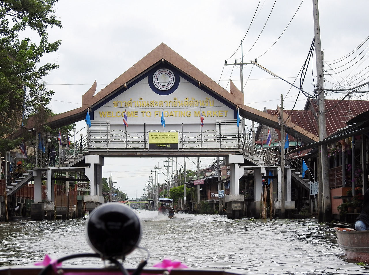 수로 옆에 왓쪼티타야까람(Wat Chotithaykaram) 사원이 있었다. 선착장이 사원 입구다. 잠시 내려서 내부를 둘러봤으나 유명한 곳은 아니었는지 볼거리가 많지는 않았다. 다시 보트에 올라 수산시장을 통과해서 야자수가 늘어진 수로를 지나 처음 보트를 탔던 곳으로 돌아왔다. 이후 경험한 암스테르담이나 베네치아와 달리 훨씬 자연친화적인 환경을 보유하고 있었다.