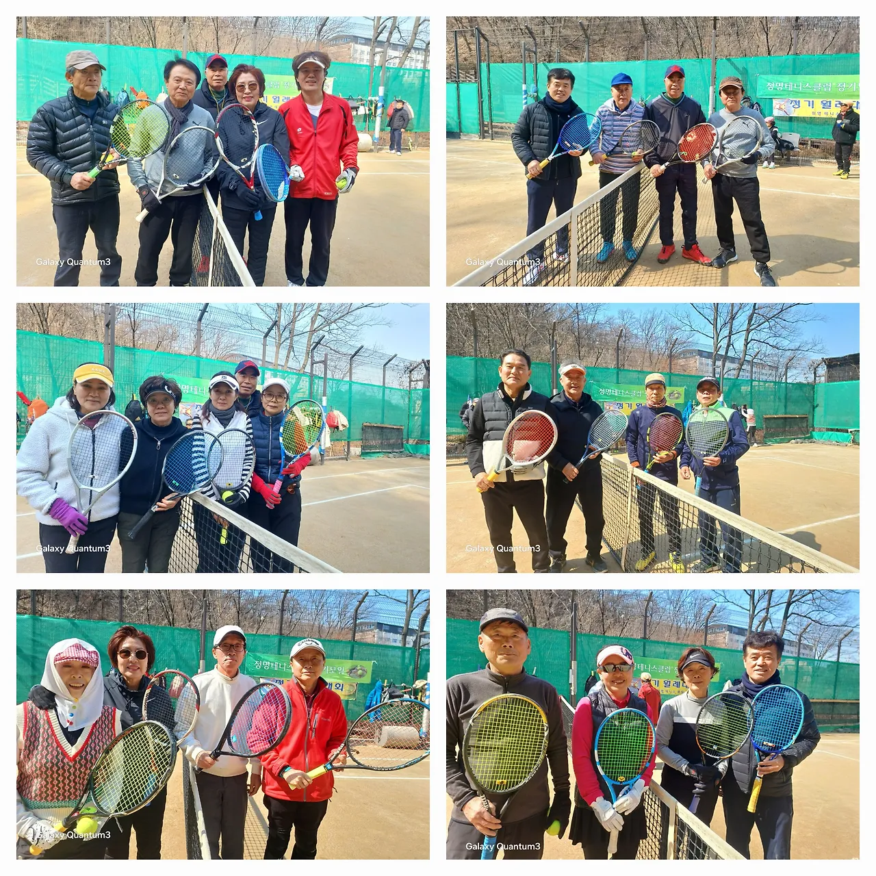 정명 테니스클럽의 첫 월례대회날은 봄이라고 늘 뒤치던 바람은 하늘이 잠시 재우고, 정명 숲의 사위(四圍)는 이미 봄을 품어 아늑하고 포근하다.