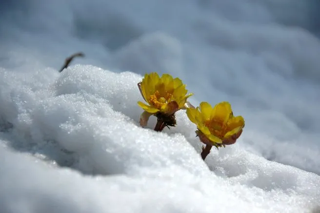 겨울 눈 밑에서 몰래 자기를 키우고 있는 복수초. 아이들은 모두 다르게 자랍니다.