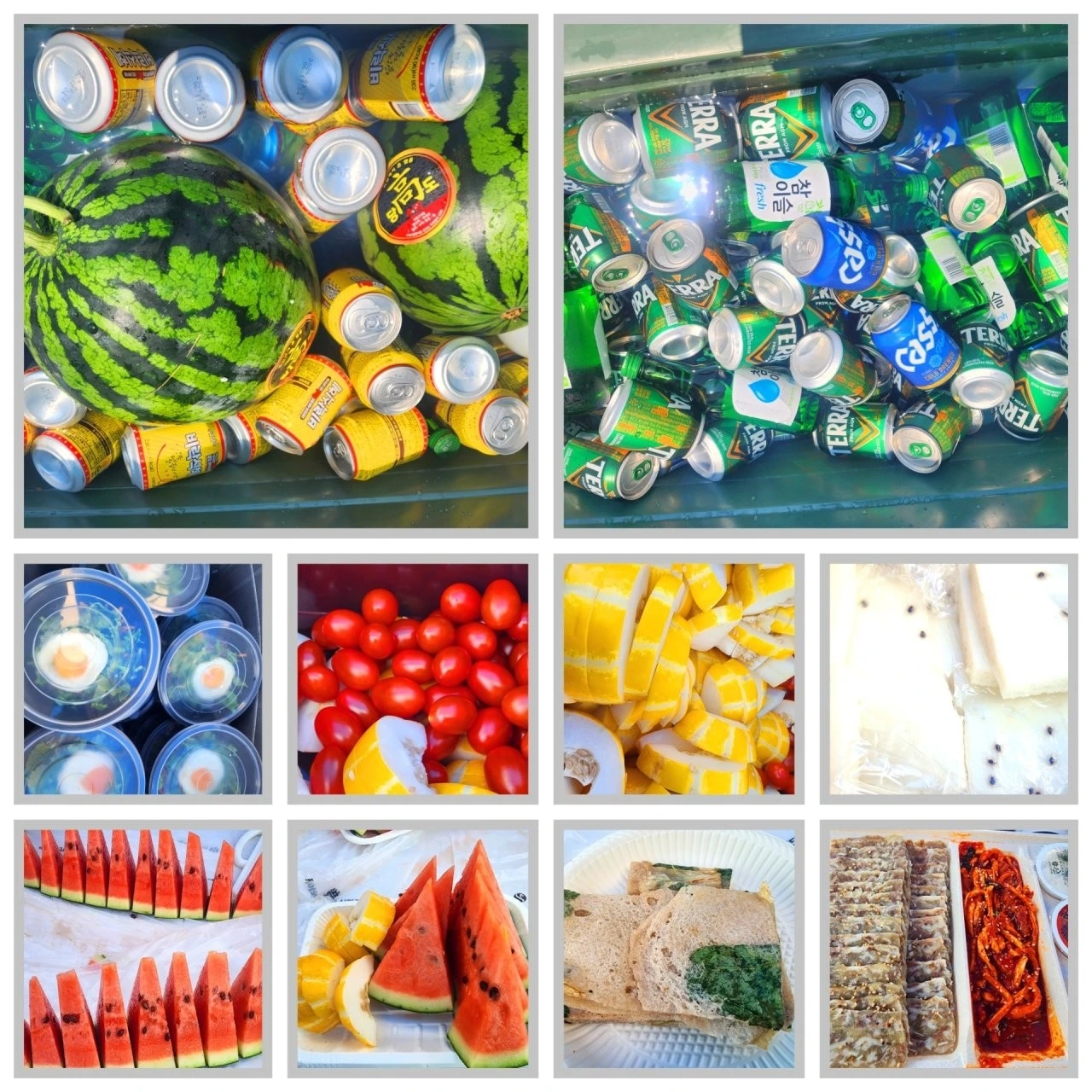 아침 식사로 침샘에 눈 녹듯이 순삭 된 야채 김밥, 점심에는 다 비비기도 전에 마음이 성급해지는 웰빙 비빔밥, 갈증을 한방에 해소하는 스몰 캔맥주와 얼음 생수, 건강음료와 주류, 제철과일로 참외와 수박, 슬라이스 편육과 메밀 전 그리고 하얀 증편까지 맛은 최고 낭비는 최소로 하는 먹거리를 AI도 이만큼 준비를 잘할 수가 있을까.