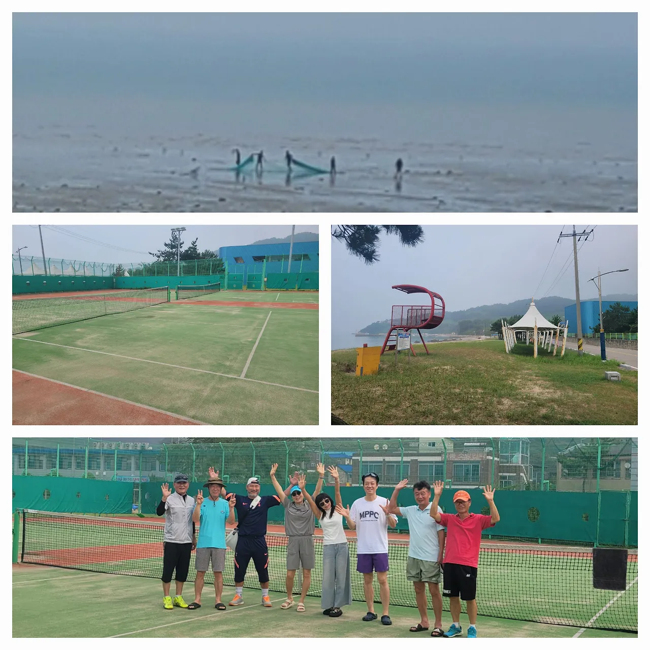 벌써 두 면의 잔디 코트에는 노란 공이 오가며 하계 캠프의 첫 시동을 건다.새로운 사람들의 볼 맛은 늘 그런 것처럼 긴장 속에서 상호 동시에 느끼는 신선함이다. 섬 깊숙이 숨어있는 맛집에서 꿀맛 같은 점심을 먹은 후 중천에 뜬 해가 넘어가기를 기다리면서 조개를 캐러 가는 사람, 수영을 하는 사람, 각자의 시간을 즐긴다.