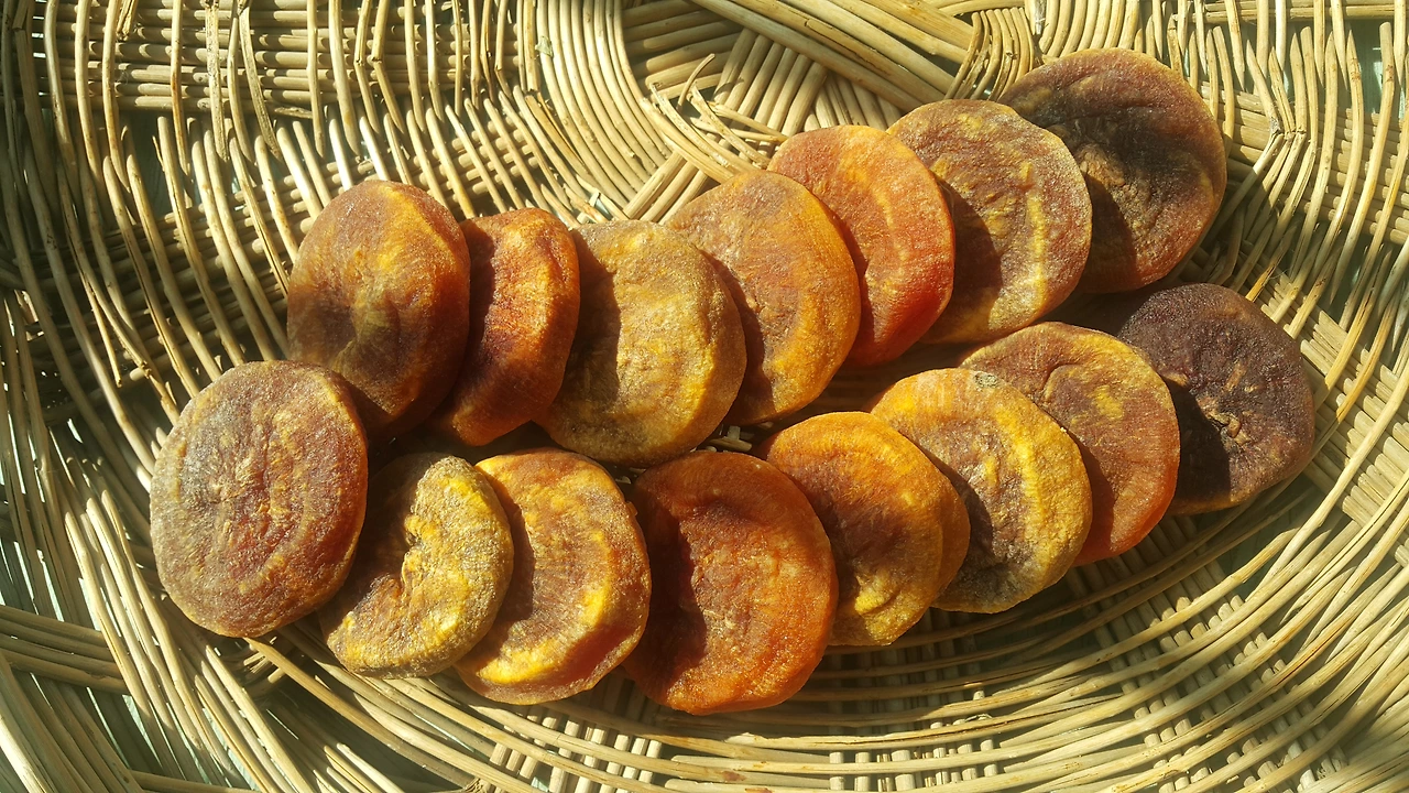 그 후 너무 딱딱하지 않게 먹기 좋은 만큼 촉촉하게 마르면 그대로 지퍼백에 넣어 냉동 보관해서 먹으면 된다. 날씨에 따라 다르겠지만 보통 2주 정도면 완성될 수 있다. 혹 비가 자주 온다던지 특별히 유독 따뜻한 가을이면 여느 해보단 미흡한 수확물을 얻을 순 있다. 그리고 아파트 베란다의 경우 바람이 잘 통하지 않으면 실패할 수 있으니 항상 문을 열어 놓을 수 있는 곳에 채반을 놔두어야 한다.