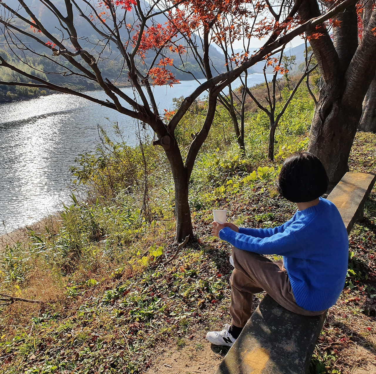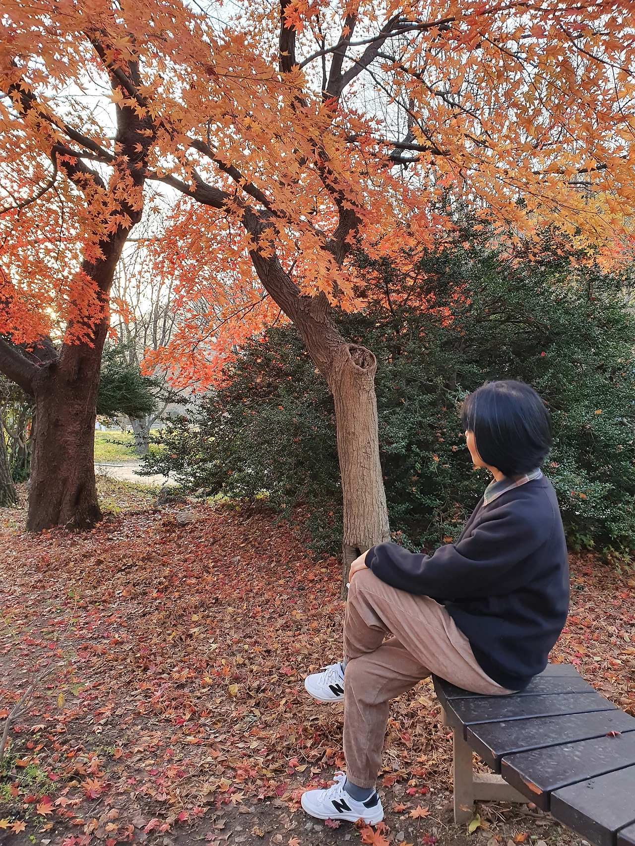 다음은 구도 잡기였다. 항상 그렇듯 내가 먼저 남편을 찍어준 뒤 결과물이 제법 괜찮으면 나도 찍어달라고 한다. 그런데 분명 같은 곳에서 찍은 사진인데 같은 곳 같지가 않다. 포커스가 전혀 다르다. 내가 바라는 건 그런 게 아닌데 어째 찍는 것마다 내 생각과 다르게 찍어준다. 이 좋은 가을 풍경을 제대로 배경으로 담고 싶은데, 언제 다시 여길 올지도 모르는데 남편이 찍어준 사진은 점점 나를 조급하게 만든다. 게다가 사람을 이상하게 잘라서 찍는다. 전신컷을 찍으려면 발끝까지 전부 넣든지 하지 꼭 발목을 자른다. 상반신을 클로즈업하려면 적당한 선에서 자르면 되는데 어정쩡하게허벅지 부분에서 자르고. 땅바닥은 또 왜 그리 사랑하는지 하늘은 조금만 들어가 갑갑해 보이고 무슨 땅바닥만 잔뜩 찍는다. 오히려 나보고 하늘을 뭐하려 많이 넣으려 하냐고 큰소리다. 하지만 항의가 빗발치자 남편도 내 눈치를 살피며 찍고 나면 꼭 확인을 받는다.