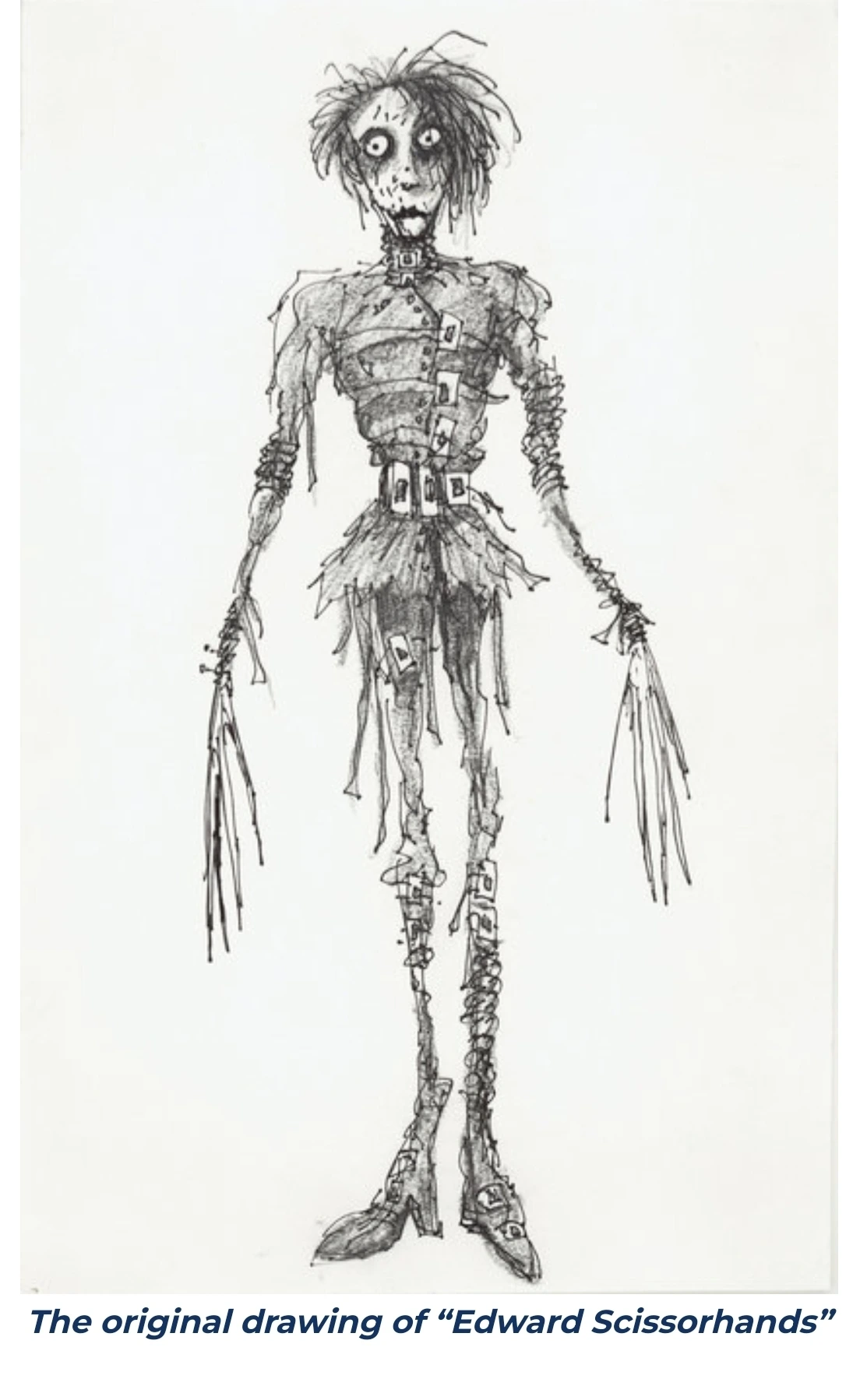 유년시절 내내 팀 버튼은 타인과 관계 맺기가 힘들어 늘 외톨이였고 고립감을 느꼈다. 이 감정을 표현하기 위해 허약하고 창백한 가위손을 가진 인물을 그렸다고 한다.
