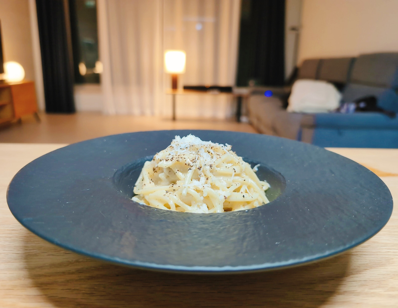 재료가 간단할수록 성공하기 어려운 요리가 많다. 카쵸 에 페페가 그렇다. 이 파스타는 페코리노 로마노, 후추, 파스타 면만 있으면 만들 수 있다. 거칠게 설명하면 파스타 면에 치즈 소스(면수+곱게 간 페코리노 로마노+ 후추)를 비비면 카쵸 에 페페다. 면수와 후추 그리고 곱게 간 치즈가 유화되어 크림 같은 치즈 소스가 나와야 성공한 카쵸에 페페가 된다. 유화가 핵심이고 어렵다. 4년 전에 3번 실패하고 최근 다시 도전했다. 육식맨이 빠니보틀, 나폴리 맛파아와 로마에서 정통 파스타 먹방을 하는 영상을 보고 파스타를 요리하고 싶어 졌기 때문이다. 그리고 분했다. 까르보나라는 쉽게 만들 수 있는데 왜 카쵸 에 페페를 만들면 망하는가. 카쵸 에 페페에 달걀노른자와 관찰레만 추가하면 까르보나라인데 말이다.