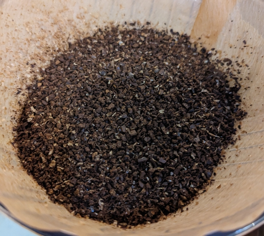 이제 원둘레 밖에서 안으로 수렴하는 역나선형으로 세 바퀴씩 물 붓기를 반복하며 420ml까지 추출한다. 역시 기준 높이는 커피빵까지다. 추출 시간 4분 30초와 추출량이 420ml가 맞아떨어진다면, 적당한 분쇄도와 물줄기로 추출했다고 볼 수 있다.