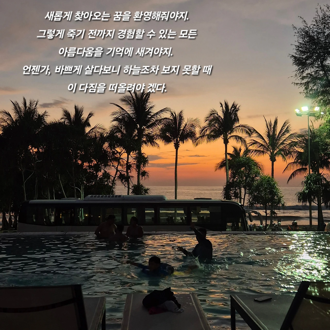 '나의 소망을 무시하지 말자. 찾아오는 새로운 꿈들을 환영해 주자. 그렇게 죽기 전까지 경험할 수 있는 모든 아름다움을 손에 넣어버리자.'