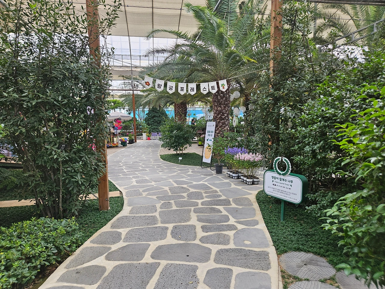 가는 길에 고속도로와 인접한 익산에 들러 '왕궁포레스트'식물원에서 차 한 잔의 여유를 즐겼습니다. 바로 옆에 위치한 보석박물관도 기대 이상으로 흥미로웠습니다. 박물관이 주는 지식들을 머릿속에 담으려 애썼지만, 결국 기억나는 것은 5월 탄생석이 에메랄드라는 사실 정도입니다.