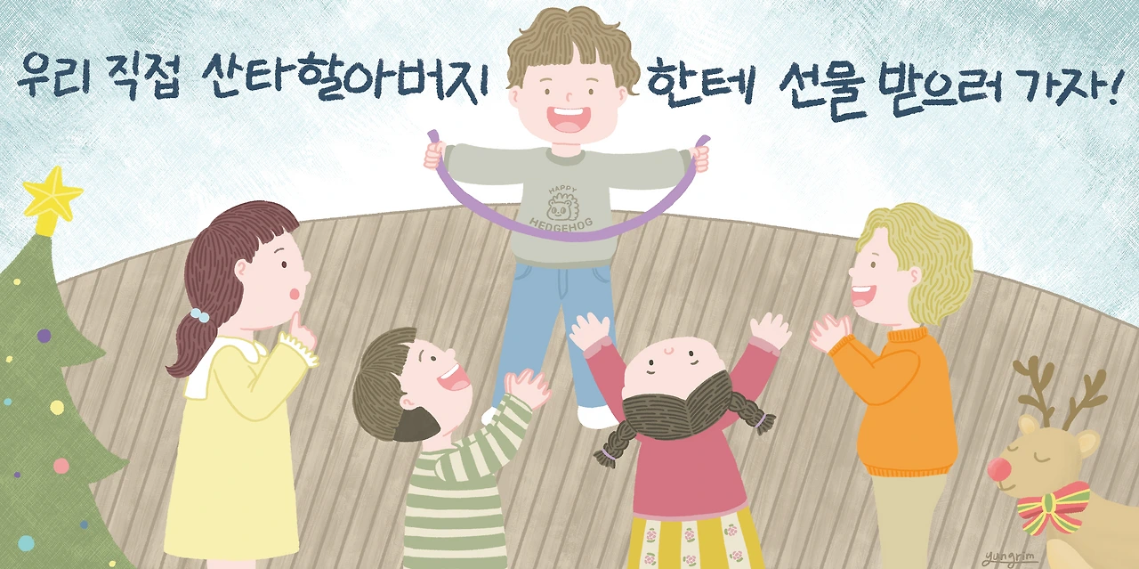 아이들은 산타 할아버지를 만날 생각에 벅찬 마음으로 기뻐했어요.