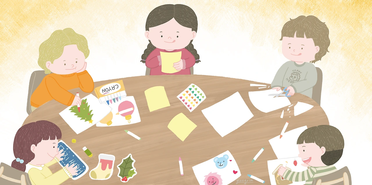 그러곤 크레용으로 쓱싹쓱싹 그림을 그리고, 가위로 싹뚝싹뚝 자르고, 알록달록한 스티커를 여기저기 붙이며 커다란 상자를 멋지게 꾸며주었어요.