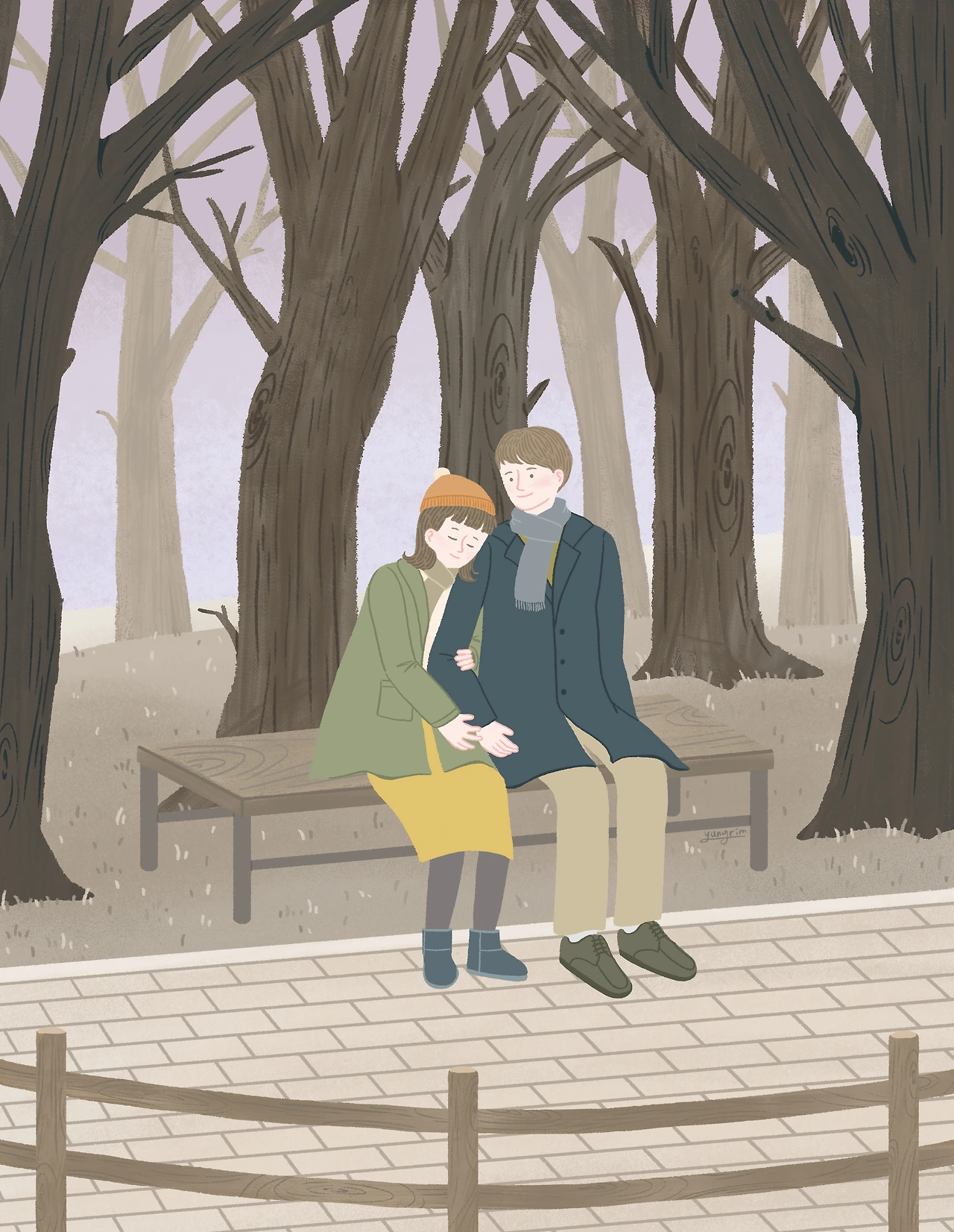 움직임없이 앉아있다보니 점점 추위가 느껴져 여자는 남자의 팔을 당겨 기대고 손을 잡으며 온기를 느꼈습니다.