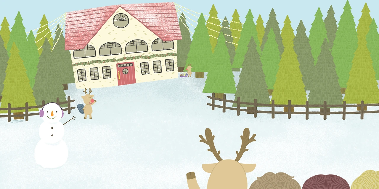 어느덧, 산타 마을에 도착했고 일하는 루돌프들이 보였어요.