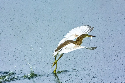 강가에서 황새는 날개짓으로