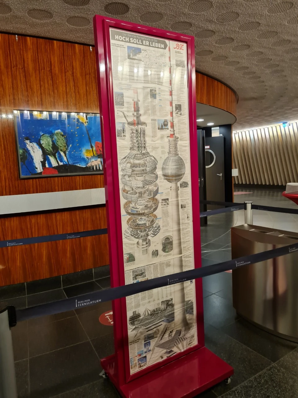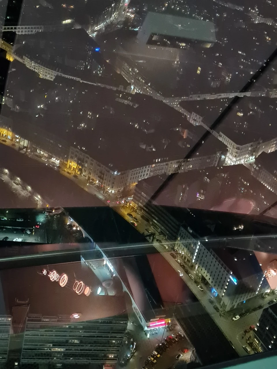 이번에는 베를린에 어학연수가 아닌 관광 온 기념으로 텔레비젼탑(Fernsehturm) 꼭대기층에 올라갔었다. 꼭대기까지 올라갈 수 있다는 건 처음 알았다! 입장료는 9€였던 걸로 기억하지만 학생 할인을 받아 4€로 들어갈 수 있었다. 티켓을 받으면 초고속 엘리베이터를 통해 단번에 꼭대기층까지 올라갔다. 0층에서 꼭대기층까지 가는 데에 중간층은 없었다. 동그란 모양의 구조가 베를린의 전경을 관측할 수 있도록 제작된 모양이다. 정말 멀리 있는 길가에 몇 명이 걷고 있는지, 그리고 잘못하면 불 켜진 창가 안에서 사람들이 무엇을 하고 있는지, 인테리어는 어떤지까지 훤히 보인다. 베를리너들은 긴장해야 한다...