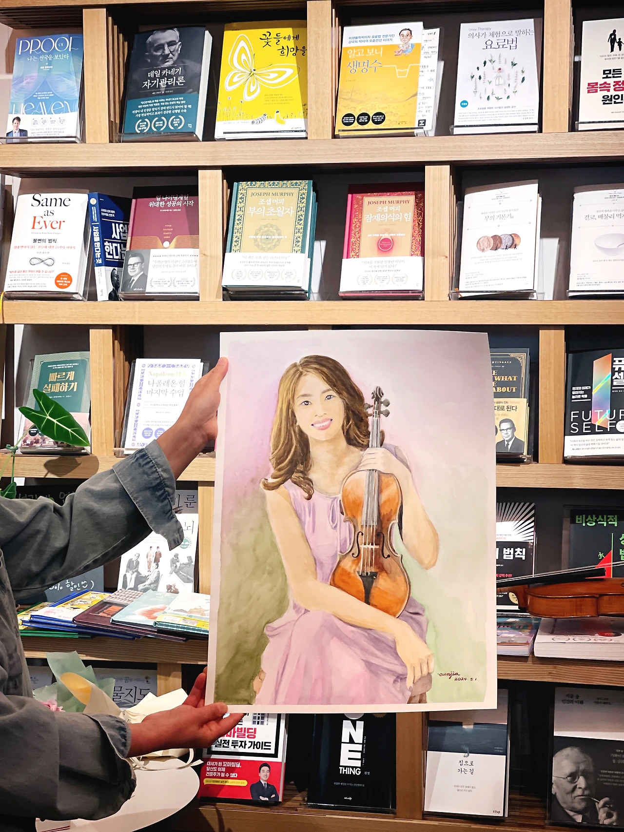 끝나고 보니 독서모임 선생님이 내 포스터를 보고 그림을 그려 오셨다. 너무나 멋진 수채화 그림이었다. 액자에 넣어 걸어 두어야겠다. 그리는 동안 내 생각을 하셨다는 생각을 하니 정말 감동이었다. 꽃다발을 주신 분, 볼펜에 내 이름을 새겨 주신 분도 계셨다. 지인 분과 같이 오신 분 중에는 처음 뵙는 분들도 계셨다. 그동안 여러 가지 취미생활을 했지만 오래 하지 못했는데 앞으로 꾸준히 해보고 싶은 마음을 갖게 되셨다고 해서 큰 보람을 느꼈다. 한 분 한 분 잊을 수 없는 소중한 분들이다. (와 주신 분들 , 모두 감사합니다! 그리고 완벽하게 준비해 주신 북바이북 김진양 사장님께도 진심으로 감사드려요.)