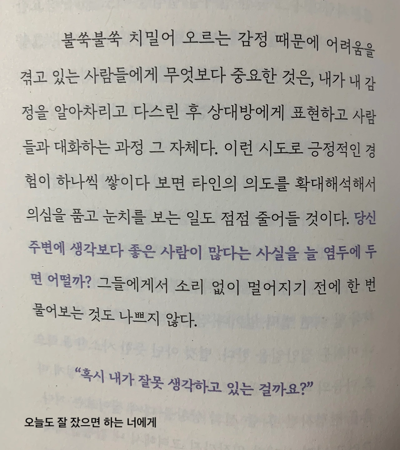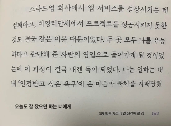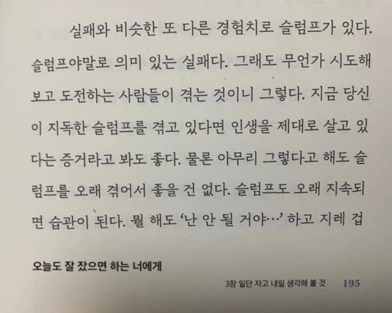출판사에서 책을 보내주신다는 메일을 받고 바로 보내주시라고 했다. 남편이 최근 불면으로 시달렸기 때문이다. 지금은 많이 좋아지긴 했지만 남편의 숙면에 도움이 될까 해서 이 책을 읽어보고 싶었다. 그런데 받고 보니 이 책은 불면을 위한 책이기보다는 정신 승리를 위한 책이었다. 불면도 수많은 생각들에서 나오는 경우가 많기 때문에 잠과도 연관이 있긴 하나, 그것보다는 정신적으로 단단해지는 일에 더 초점이 맞춰져 있다.