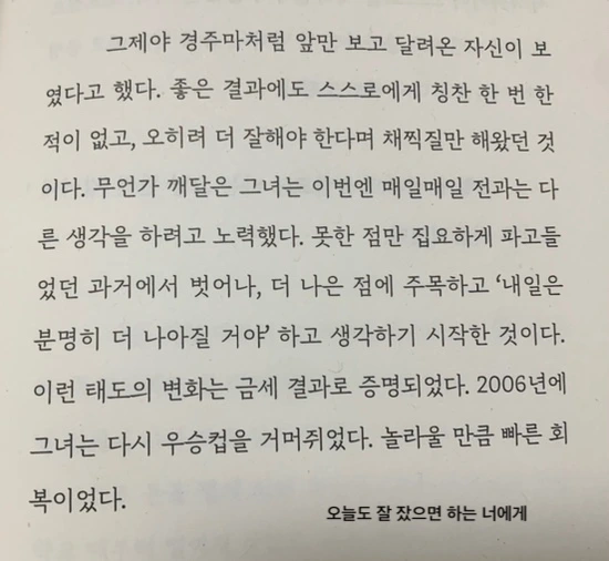 한때 고시원에서 생활하며 힘든 시절을 보내기도 했던 저자는 지금은 두 권의 책을 낸 작가이자 많은 팬을 보유한 유튜버이다. 그녀의 이런 변화에는 뼈를 깎는 노력이 있었을 것이다. 거저 얻어지는 것은 없는 법이니까. 두 권의 책도 유튜브를 본 편집자로부터 먼저 출판 제의가 들어와 출간했다고 하니 참 부러운 분이기도 하다. 원고를 완성하고서도 출판 기회를 잡지 못해 고민하는 이들을 생각하면 말이다.