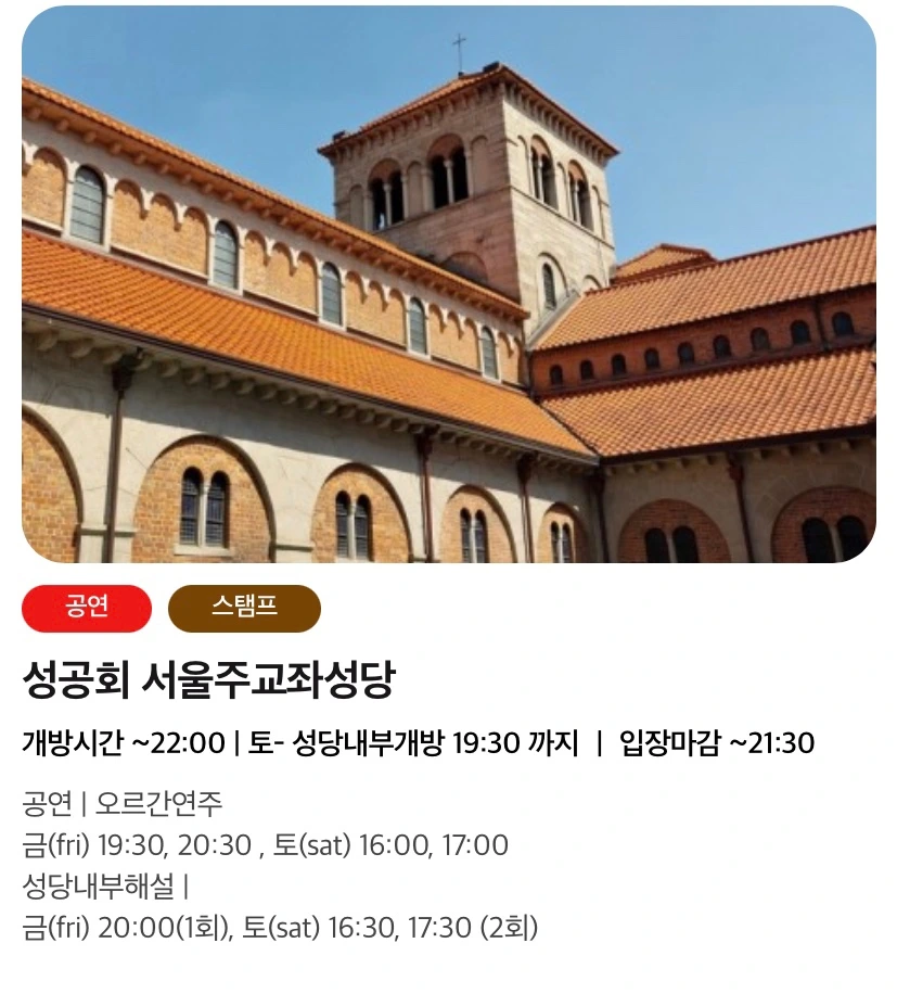 얼마 전 광화문에 사시는 선생님으로부터 정동야행 소식을 들었다. 처음 들어본 정동야행은 중구 덕수궁길과 정동길 일대에서 진행되는 이틀 간의 문화행사였다. 선생님은 일정이 있어 못 가지만 혹시 관심 있으면 가 보라는 말씀을 듣고 관람이 가능한 것을 찾아보다가 성공회교회의 파이프오르간 공연을 찾았다.