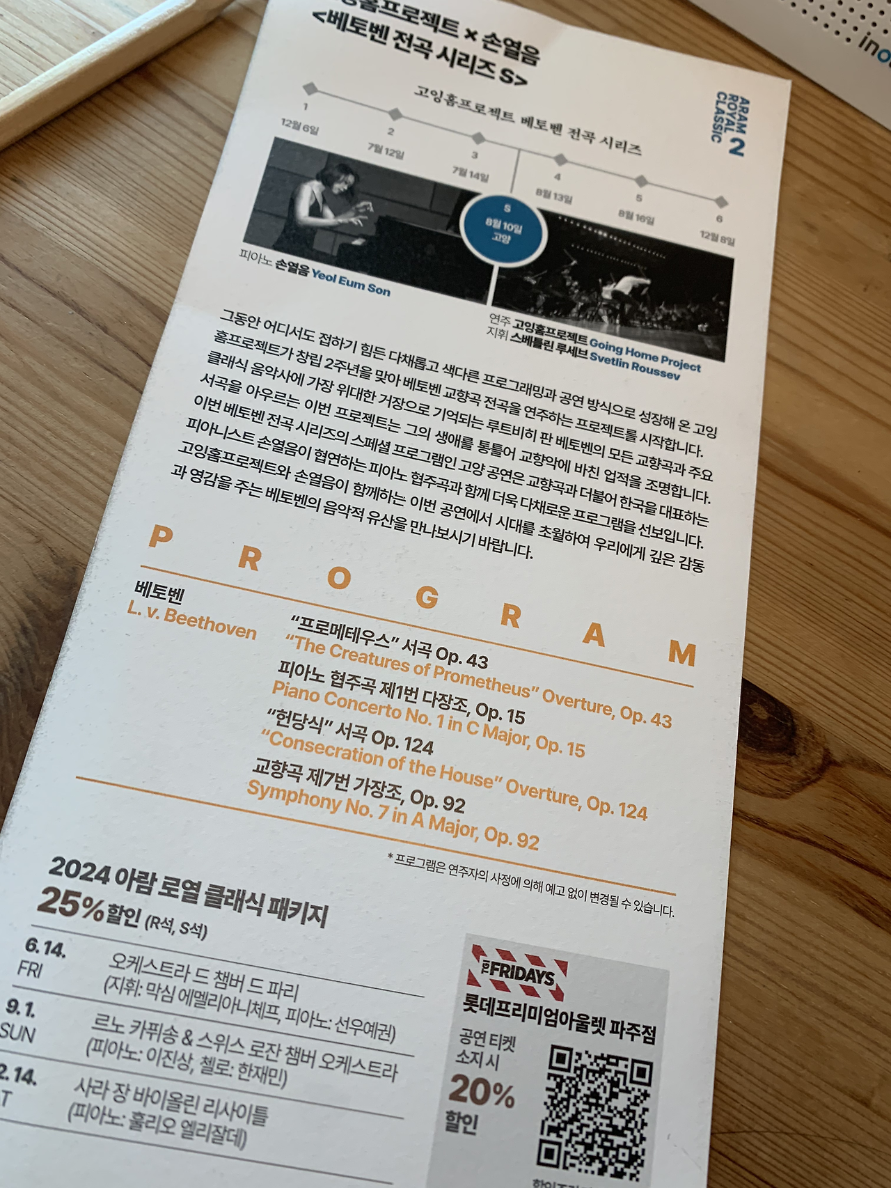 다녀온 지 한참만에 글을 쓴다. 너무 좋은 공연이었다고 말하기에 부족함이 느껴질 정도로 좋았다. 유명한 분들 공연을 자주 놓치는 나는 오케스트라 한 분이 표를 여유 있게 구매해 한 장을 파실 때 제일 먼저 손 들었다. 그래서 오케스트라 분들과 함께 보아서 더 좋았다. 이중 베토벤 7번 교향곡은 11월에 우리 오케스트라가 연주할 곡이라 더 자세히 들었다. 우리와 비교되는 엄청난 스킬과 속도에 압도당했다.