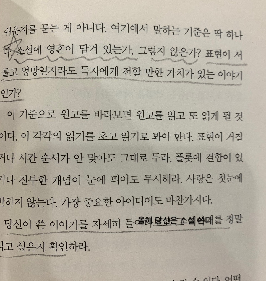 글을 많이 썼다고 해서 좋은 소설이 되는 것은 아니다. 표현이 서툴더라도 독자에게 전할 가치가 있는 글을 쓰는 것이 중요하다. 저자는 이렇게 묻는다. “소설에 영혼이 담겨 있는가?” 영혼이 담긴 소설, 읽고 싶은 이야기를 쓰자.