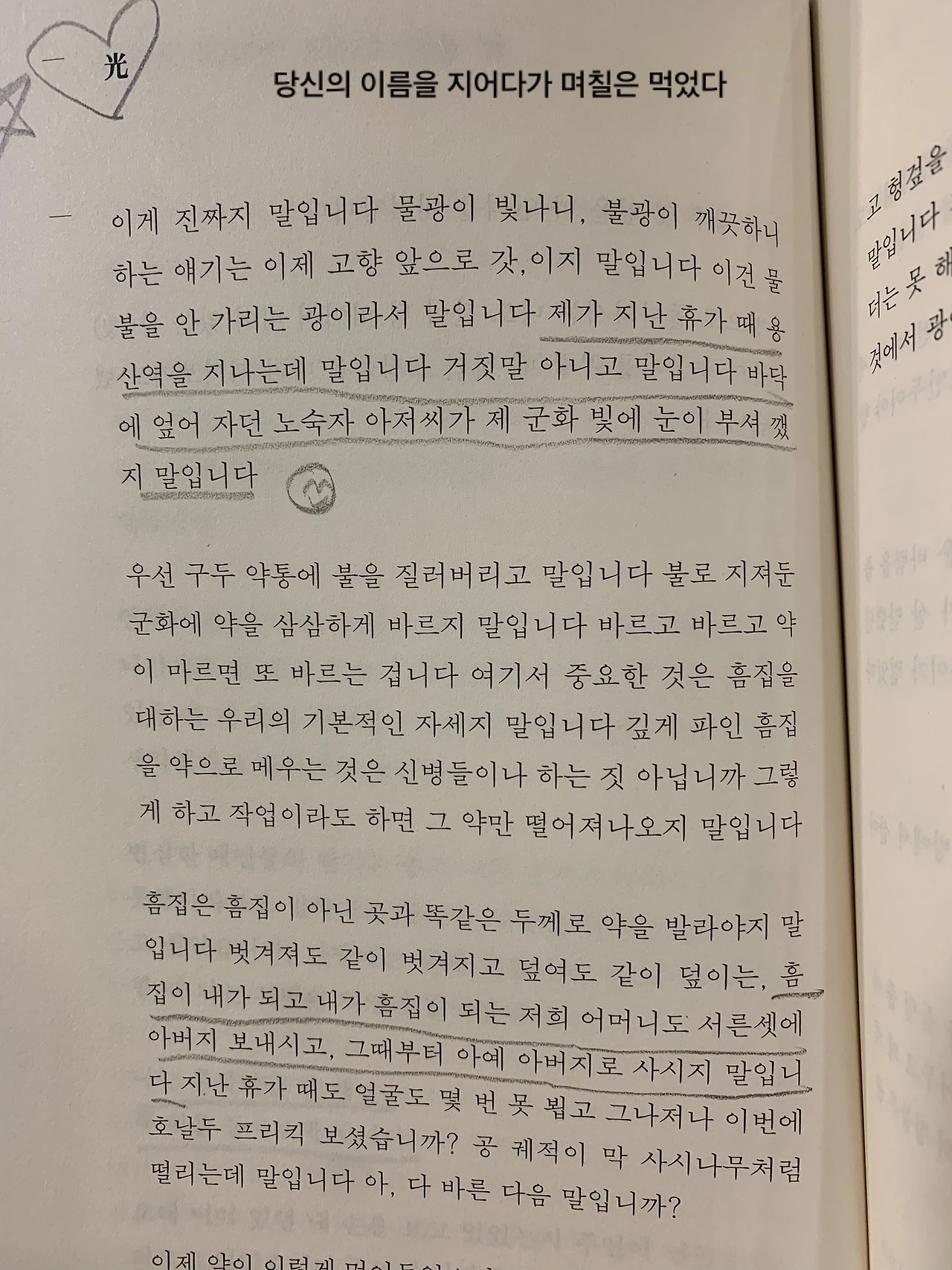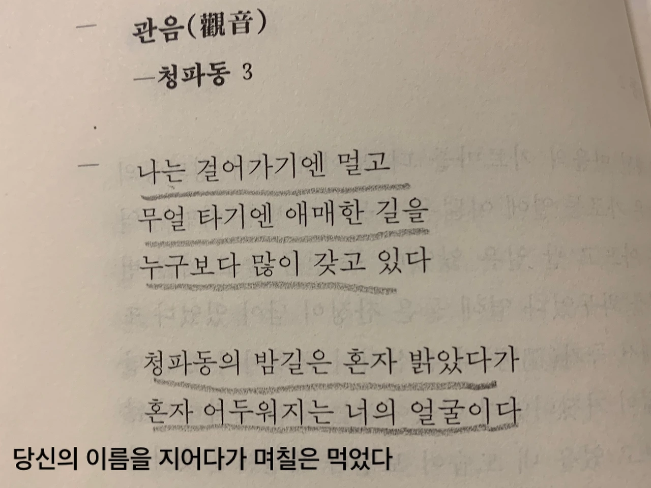넷이 밥을 먹고 차를 마시며 잠깐 이야기를 나눈 바로는 너무나 평범하고 밝은 분이라 여겼는데 글을 읽어보니 그간 아픔도 많았겠다 싶다. 사람의 아픔을 공감할 줄 아는 사람은 마음이 따뜻한 사람이 아닐까? 시에 등장하는 인천, 청파동 등지는 시인의 추억과 맞닿아있는 곳이다. 범위를 좁히고 구체화시킨 시는 시임에도 실제감을 더해준다는 걸 알았다.