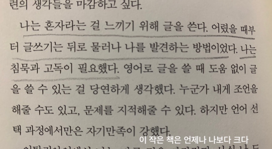 책을 읽다가 작가가 영어가 아닌 이탈리아어로 이 책을 썼음을 알게 되었다. 인도인 부모님과 뱅골어를 사용하던 그녀는 유치원에 들어가면서 영어를 제대로 접하게 되었고, 부모님이 사용하는 언어와 영어 사이에서 혼란을 느끼는 시기를 보냈다. 영어를 열심히 익힌 것은 어쩌면 결핍감을 채우기 위함이었는지도 모른다. 결국 그녀는 베스트셀러 작가가 되어 누구 못지않은 영어 사용자임을 증명했다.