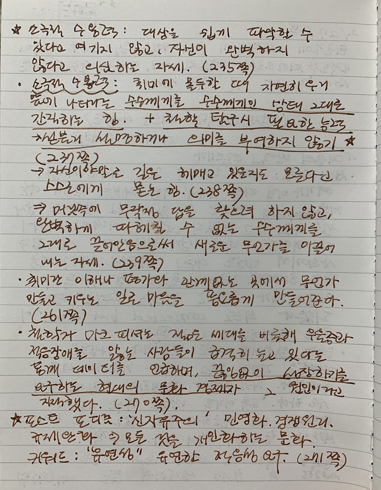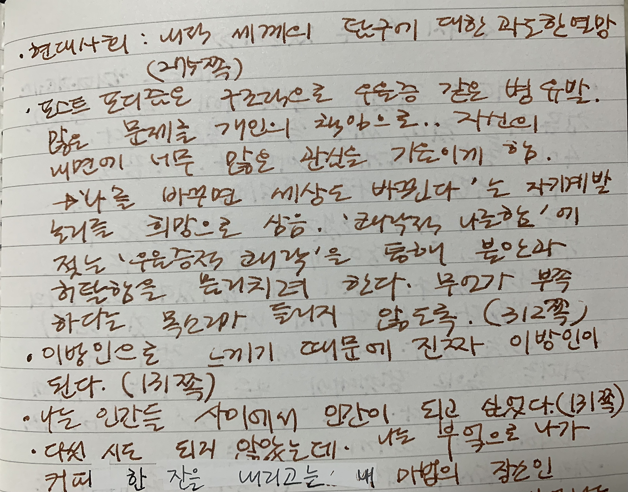 귀여운 표지 그림에 비해 쉬운 책은 아니었다. 예로 들고 있는 영화나 책이 낯설기도 했다. 1990년생 젊은 철학자의 책이어서 철학이론 부분도 많았다. 세대차이, 혹은 문화 차이도 있을 것이다. 어떠한 차이에도 불구하고 책을 관통하는 의미에는 깊이 공감했다.