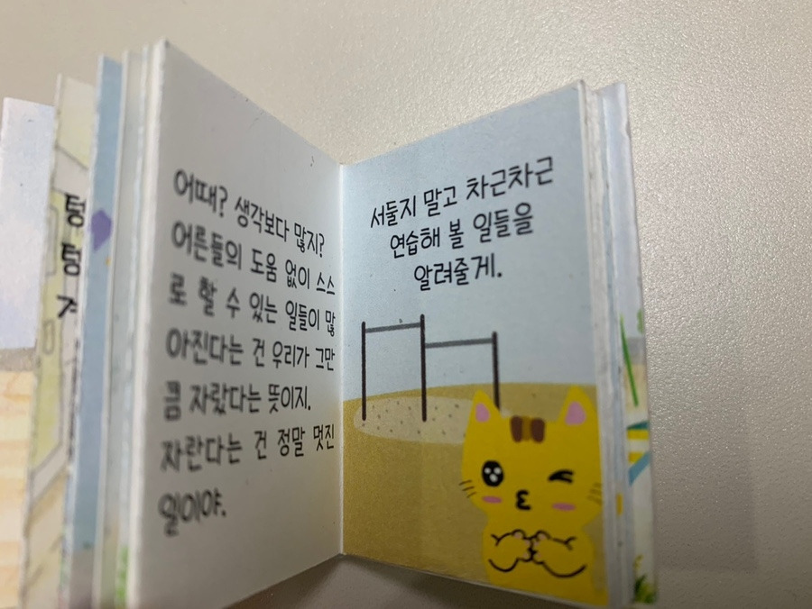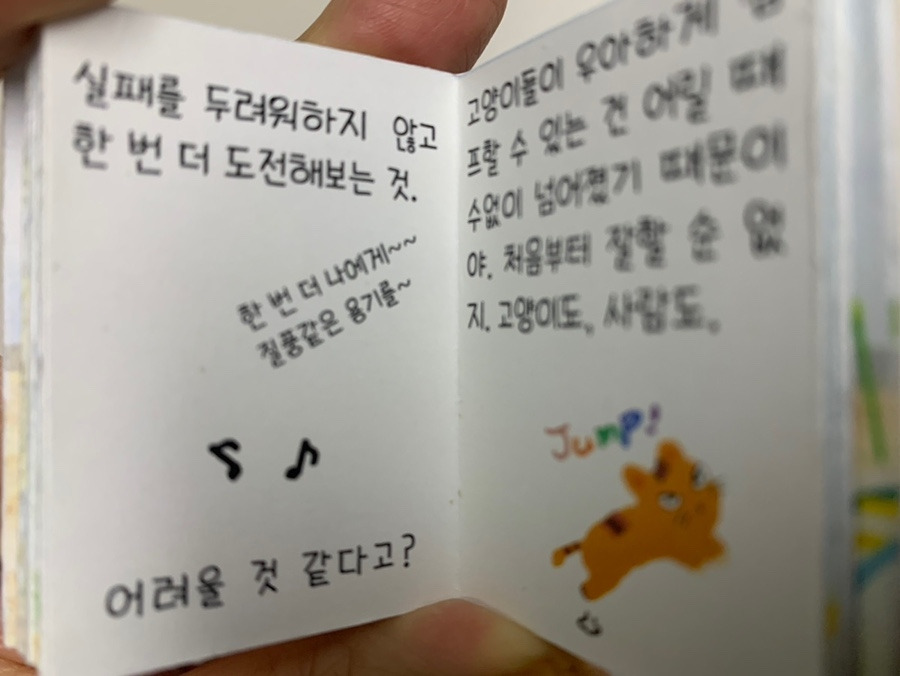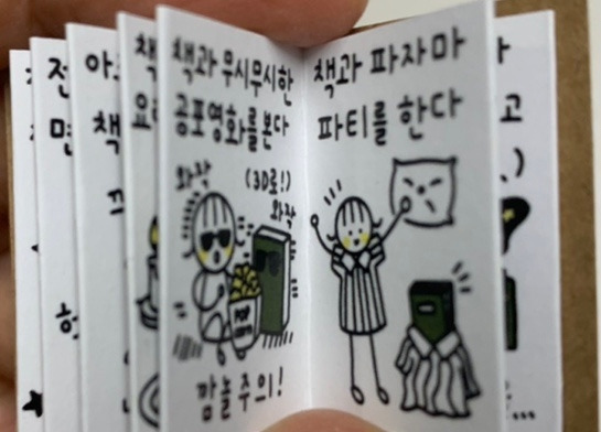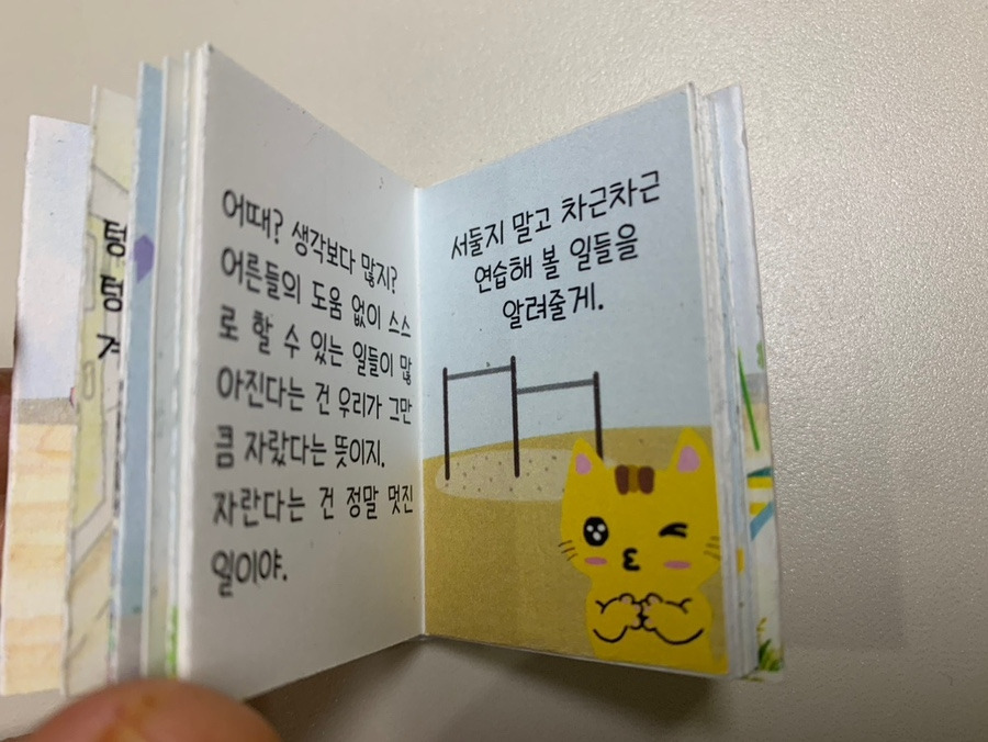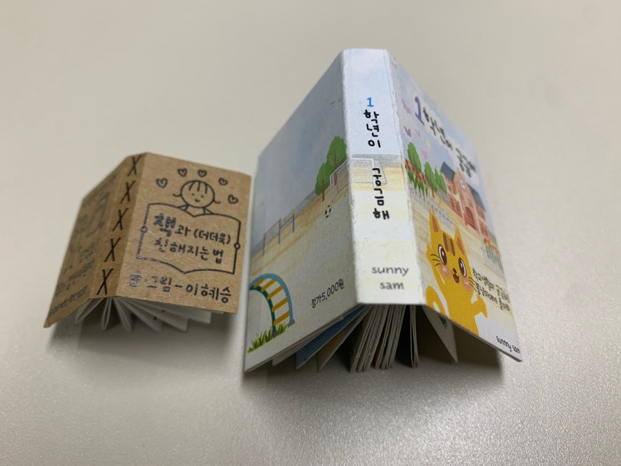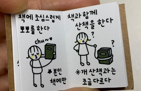 내 생애에 이렇게 작은 콩알북 선물은 처음이다. 아침에 작가이자 주무관님이 메시지를 보내서 잠깐 들렀다가 이렇게 깜찍한 선물을 받았다. 1학년 아이 손가락만 한 길이의 책이다.