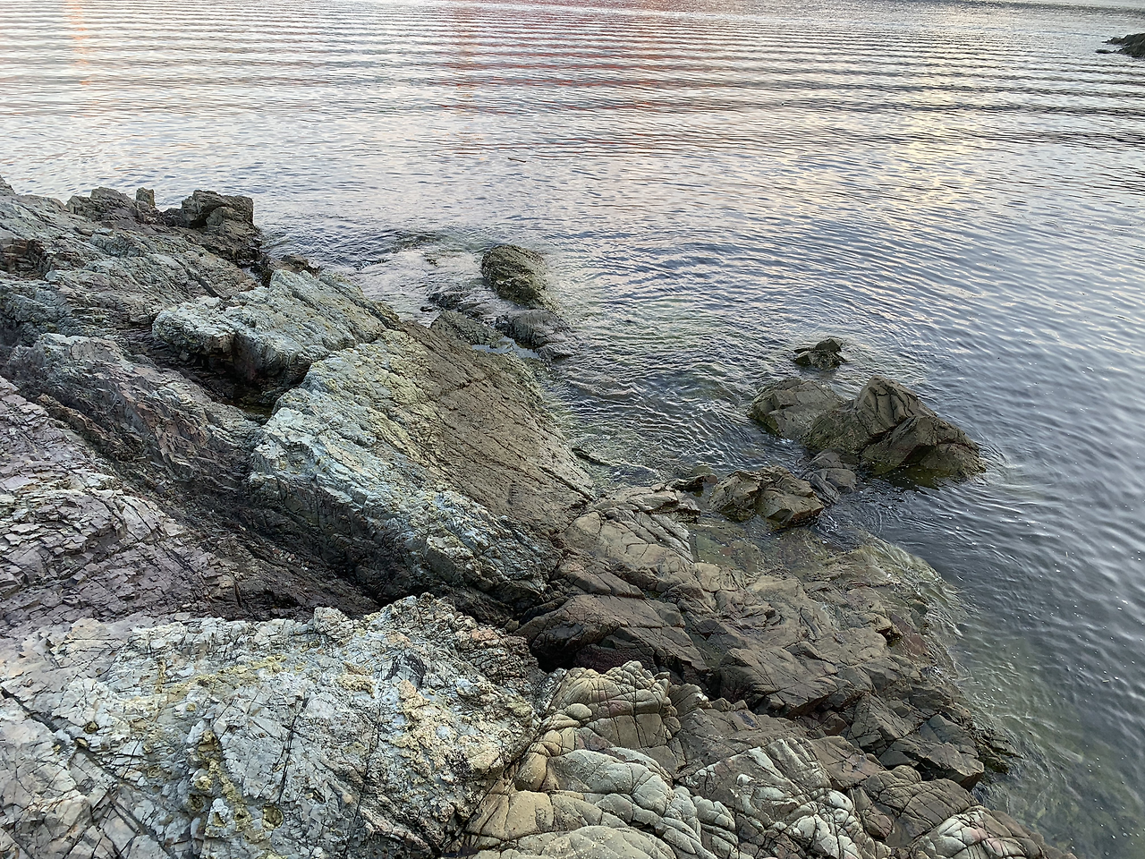해변이 몽돌해변처럼 자갈이 많았다. 이쪽이 그런 곳이 많은가 보다. 돌아오는 길에 어스름이 내렸다. 배는 별로 고프지 않았지만 저녁을 먹으러 횟집으로 갔다. 바다니까 회를 먹어야 한다는 남편을 위해 이번에도 검색으로 평점이 높은 곳으로 갔는데 음식 맛도 좋고, 너무 친절하셔서 즐거운 저녁 시간을 보냈다. 물통에 씌어 있는 ‘어린 물고기는 바다의 미래 자원’이라는 거제시의 글귀가 감동적이었다. 처음 도착해 바다를 보러 갔을 때 낚시하시는 분들을 여럿 보았는데 그중 한 분이 팔뚝만 한 숭어같이 생긴 생선을 잡았다 다시 놓아주었던 게 떠올랐다. 바닷가 분들에게 바다는 숭고함의 대상인 것일까?