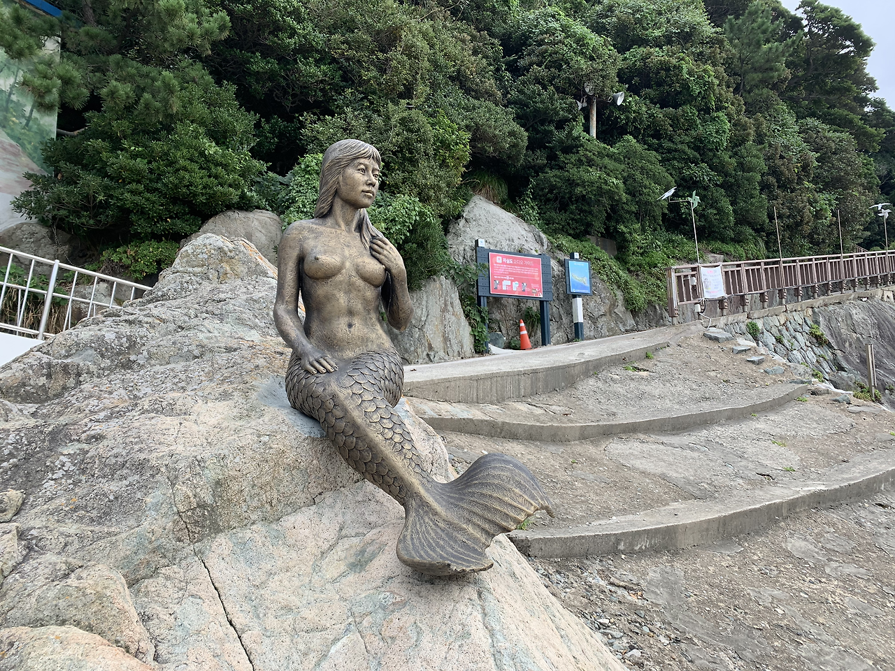 지심도에서는 인어가 우리를 맞았다. 배에서 나오는 방송을 들으니 지심도의 유래가 위에서 봤을 때 마음 심자를 닮아서라고 했는데 지도를 보니 정말 그랬다. 사진을 찍어 걸을 곳을 생각하며 들어갔다. 15 가구 17명의 주민이 살고 있다고 했는데 이들은 입구 근처에서 민박이나 음식점 등을 하고 있었다. 들어갈 때 이분들 아니었으면 길을 찾기 어려웠을 것이다. 배가 너무 부르고 화장실 가게 될까 봐 아무것도 먹지 않아 죄송했다. 이곳은 한려수도 해상 국립공원 중 하나이기 때문에 휴지도 버리면 안 되고, 화장실에 손 씻는 곳도 없다는 것이 조금 불편하기도 하지만 자연을 사랑하는 마음으로 그런 규정을 만든 것이 감사했다.