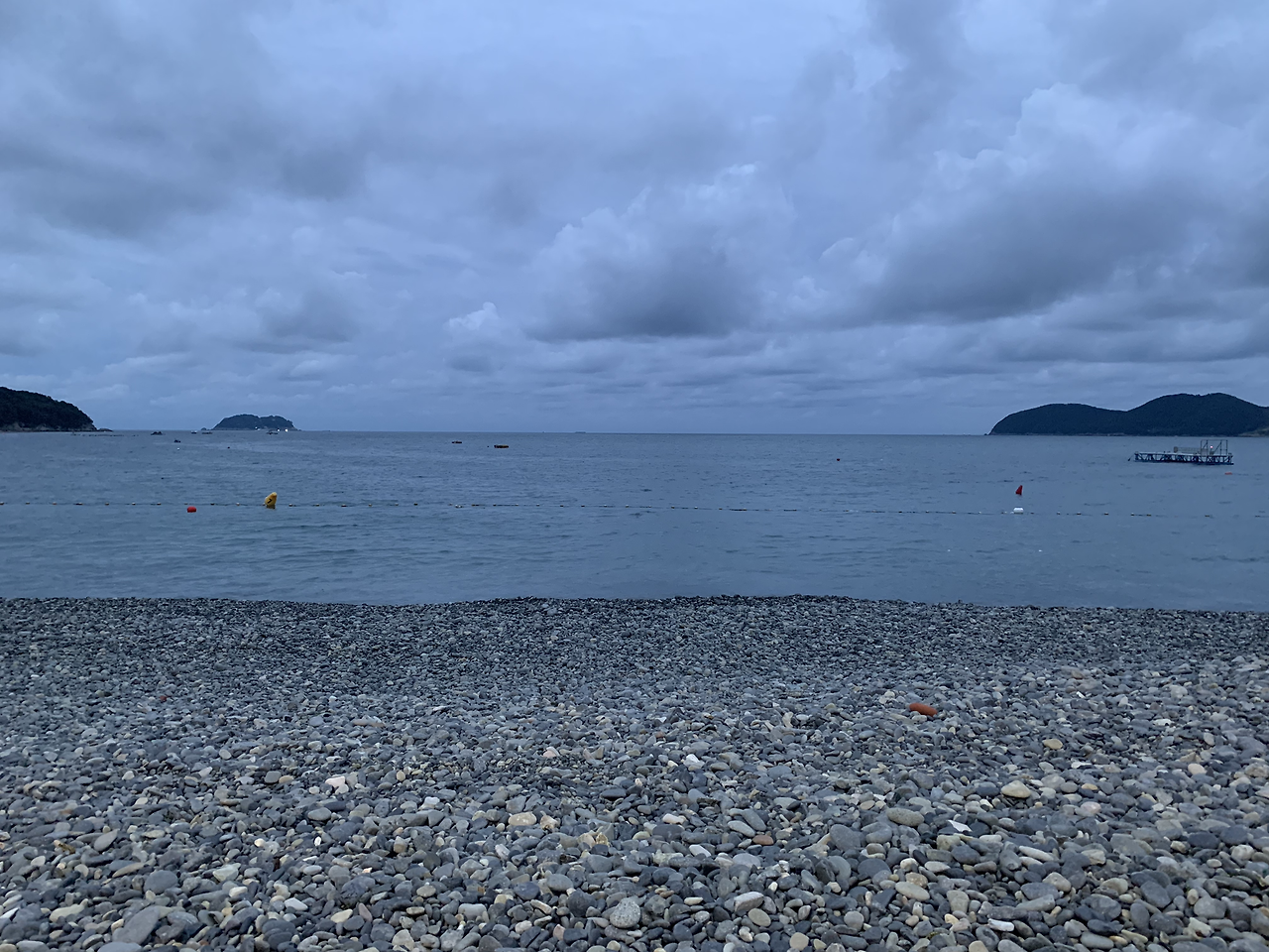 몽돌은 여러 색이 섞어 있었는데 정말 흑진주처럼 까만 몽돌도 많았다. ‘몽돌’하면 정말 동글동글한 느낌이 든다. 엉덩이를 대고 앉아 있어도 아프지 않을 정도로 둥글둥글했다. 파도로 들어온 바닷물이 나갈 때 정말 자글자글한 소리가 나 신기했다. 사람들도 꽤 있었는데 워낙 넓은 곳이어서 거리가 멀었다. 오늘 다닌 곳 중 사람들이 넘쳐나는 곳은 없었다. 거제는 일일 확진자 10명으로 내가 살던 곳보다는 훨씬 안전하게 느껴졌다.