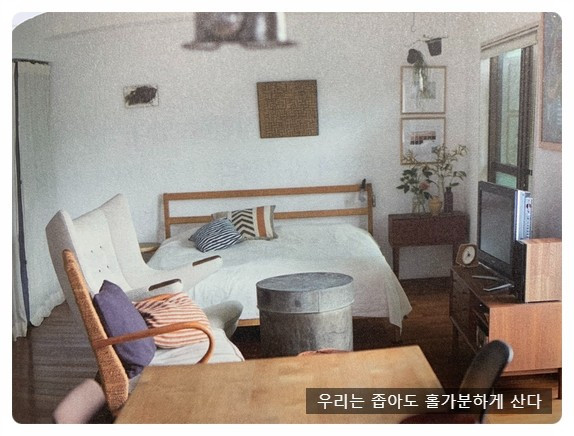 나 같은 경우에는 가방 크기에 따라 넣고 다니는 물건의 양이 달라지는데 가방이 크면 클수록 불필요한 것까지 넣고 다니는 경향이 있다. 그런 의미에서 본다면 집도 마찬가지이다. 집이 넓다고 늘 쾌적한 것은 아니다. 넓은 만큼 채우면 좁게 느껴지기도 한다. 여기에 소개된 집들은 모두 20평 미만이다. 이곳에서 가족, 혹은 부부가 살아간다. 교통과 편의시설을 위해 도심의 원룸이나 투룸을 택하는 사람도 많다. 나의 지인 중에도 투룸을 호텔처럼 꾸며 놓고 심플하게 사는 이도 있는데 그 집에 가 보면 좁다는 걸 느끼지 못할 정도로 쾌적하고 깔끔하다. 고로 중요한 것은 정리정돈 습관이라는 의미이다.