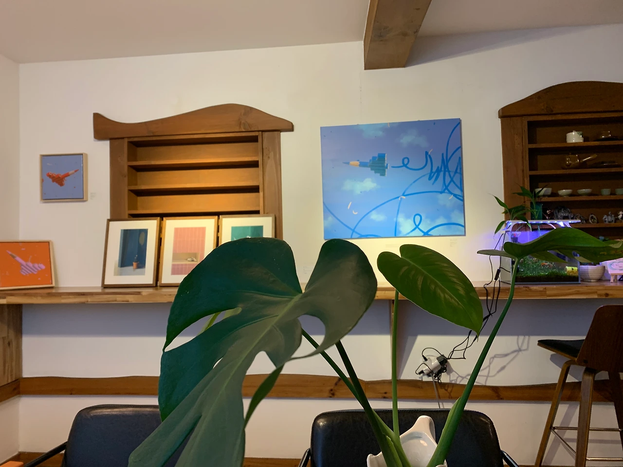 첫 곡은 클래식 기타와 주랑님을 레슨 해주시는 선생님이 영화 원스 삽입곡을 연주해 주셨다고 한다. 듣지 못해 아쉬웠다. 다음부터는 귀에 익숙한 느리고 서정적인 곡을 멘트와 함께 진행하셨는데 연주도 연주지만 입담이 너무 좋으셔서 마음이 편안해지고 재미있었다. 그리고 공연장이 너무 아름다웠다. 갤러리처럼 작가들의 작품을 전시하는 곳이라고 했는데 카페 매니저님이 연주 끝날 때마다 호응을 하셔서 분위기가 정말 화기애애했다. 마음이 참 따뜻한 분이신 것 같았다. 주랑님의 연주는 비브라토 거의 없이 고음악 같은 깨끗한 음색이라 여느 연주자와는 다른 느낌이었는데 자신이 살아온 이야기와 함께 연주를 들으니 그렇게 포근하게 느껴질 수가 없었다.