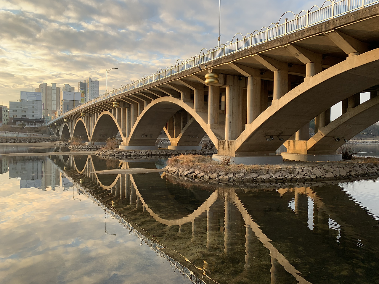 진주에 도착하니 저녁이 되어가고 있었다. 우리는 호텔에 짐을 내려놓고 간편한 차림으로 저녁을 먹으러 갔다. 미리 검색을 했는데 생각보다 음식점이 많지 않아 직접 걸어 다니다 괜찮은 곳이 있으면 들어가기로 했다. 그 옛날 번창했던 그 동네는 문 닫힌 곳이 더 많을 정도로 인적이 드물었다. 금요일 저녁 6시인데도 말이다. 마음이 아팠다. 문산이나 계양에 대단지 아파트들이 생기면서 인구가 많이 빠져나간 모양이다. 우연히 들어간 생선구이집에서 인심 좋은 주인 분께 맛난 저녁을 대접받고 일찍 호텔로 돌아왔다. 강변을 따라 걷는 길이 아름다웠다.