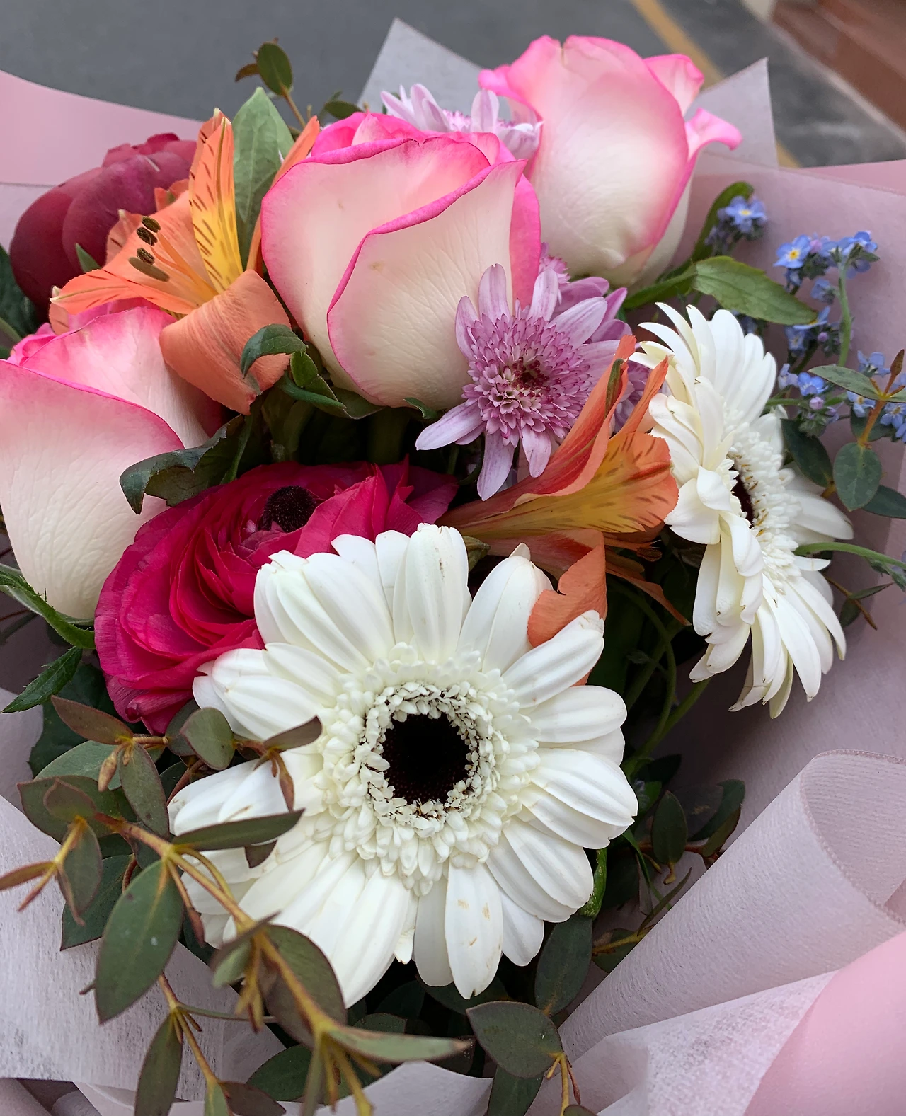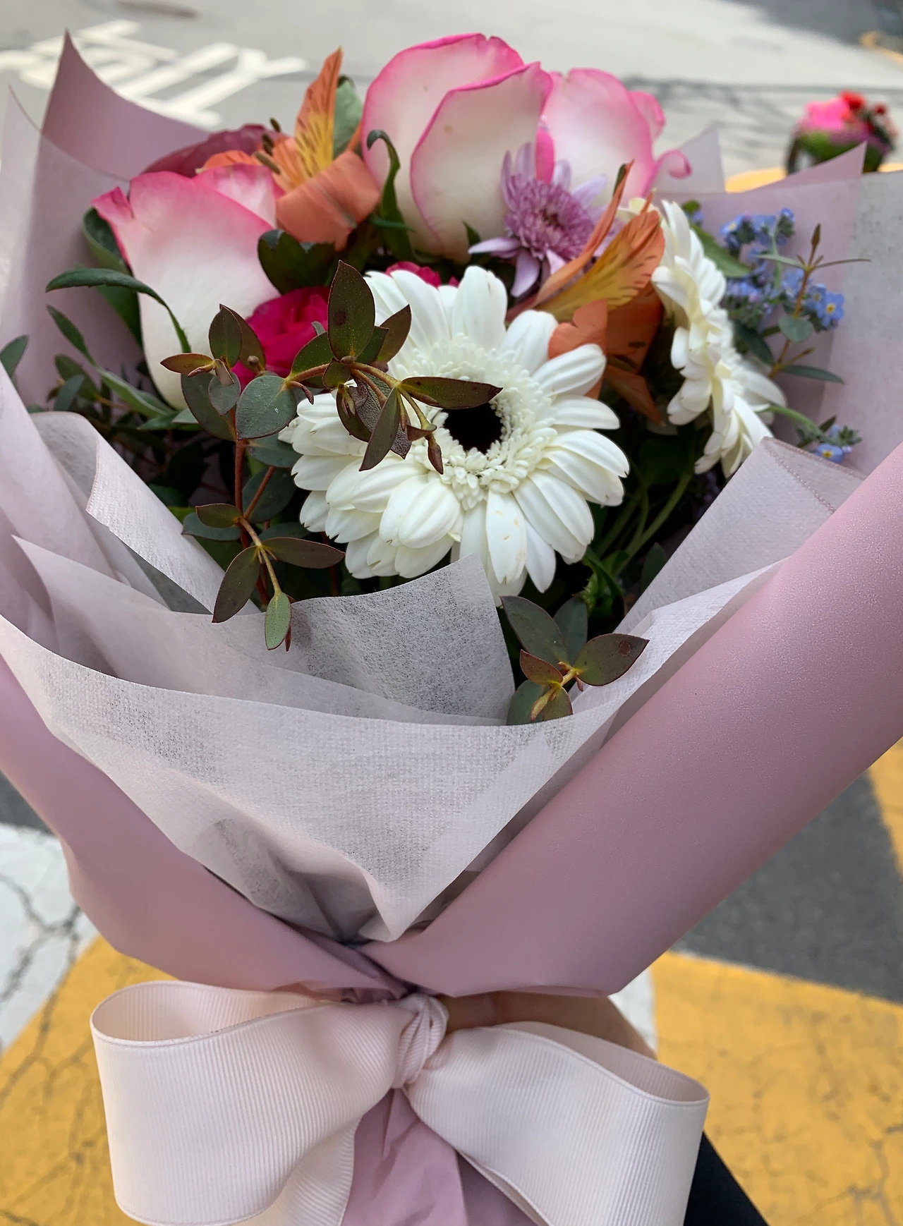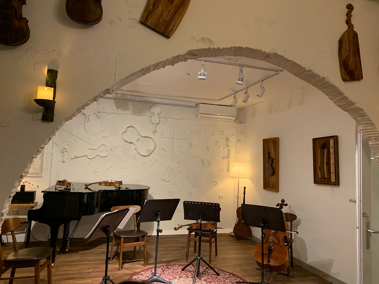 오래전부터 계획되어 있어 일정표에 저장해 두고 기다렸다. 토요일 오전 레슨을 받고 바로 서초동으로 출발했는데 생각보다 시간이 많이 남을 것 같아 자주 가는 악기사에 악기 점검을 받을까 하고 들렀다. 두어 달 전에 점검을 받은 터라 달리 할 건 없어서 케이스에 넣고 다니던 습도계를 글루건으로 잘 보이는 곳에 붙여 주시며 여름에 다시 오라고 하셨다. 연주회장이 그곳에서 가까워 차를 악기사 옆에 두고 악기도 맡겨 놓은 채 연주회장으로 갔다. 그곳도 악기 수리하는 곳이었는데 한쪽을 아담한 연주회장으로 개조한 아기자기한 곳이었다. 차 댈 곳이 없어 놓고 오길 잘했다는 생각을 했다. 미리 준비한 예쁜 꽃다발이 더운 차에서 생기를 잃어가고 있어 그늘로 걸어 다니다가 연주회장에 도착하자마자 선생님이 보여 바로 드리며 축하했다.
