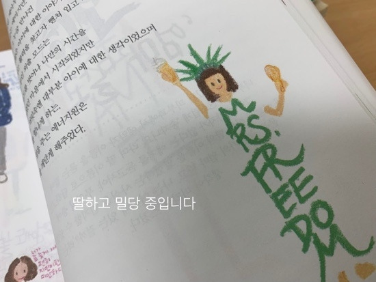 출판사로부터 책을 받았다. 우리 집 아이들은 다 컸지만 쓰고 있는 책이 사춘기에 대한 것이라 궁금한 마음에 보내주시라고 했다. 처음 도착한 책을 보고 정말 놀랐다. 총천연색 그림이 너무 사랑스러웠기 때문이다. 깔끔한 흰색 표지에 그려진 심플한 그림도 예뻤고, 군데군데 담긴 선명한 크레파스 그림과 색연필로 쓴 글씨도 예뻤다. 한국 예술 종합 학교를 졸업했다고 나오는데 그림을 전공했는지 아트 디렉터를 했던 그녀는 아이를 키우면서 회사를 그만두었다고 한다. 그녀의 재능과 끼는 가두어둘 수 없었을 것이다. 딸과의 이야기를 그림과 글로 남겼고 고스란히 책이 되었다.