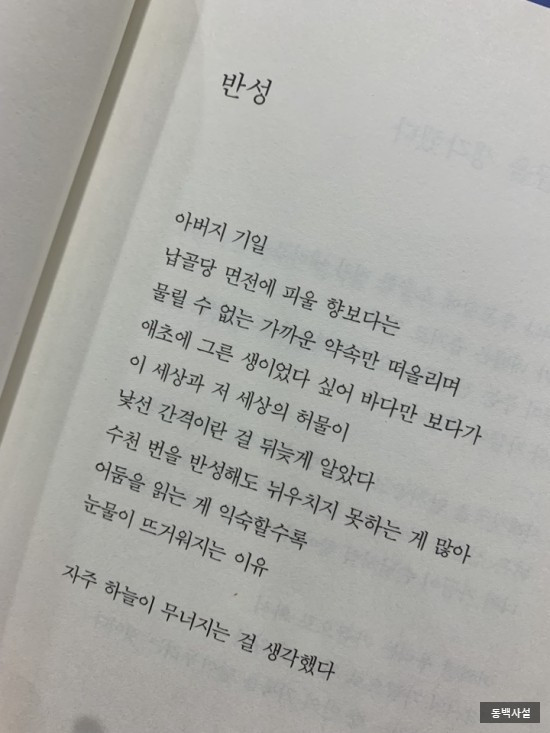 시를 읽다가 눈물이 날 것처럼 마음이 일렁이는 느낌을 종종 받았다. 시인의 개인적인 경험이 시의 뼈대이므로 모두 이해할 수는 없는 일. 시집을 많이 읽어보지는 않았지만 읽은 시집 중 참 마음에 든다. 보내주신 시인 분께 감사드리고, 앞으로도 많은 사람에게 울림을 줄 좋은 시를 많이 남기시길 응원한다.