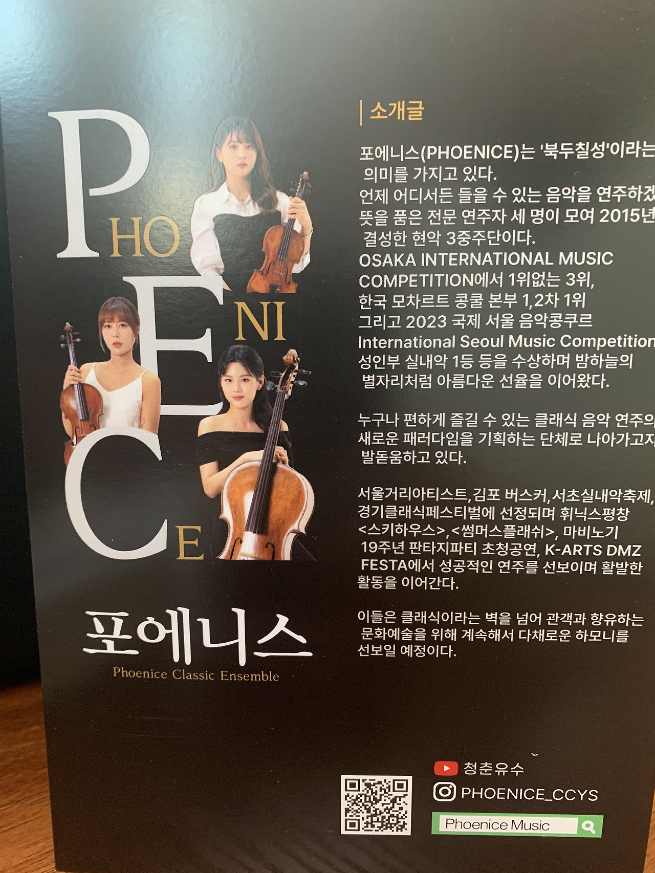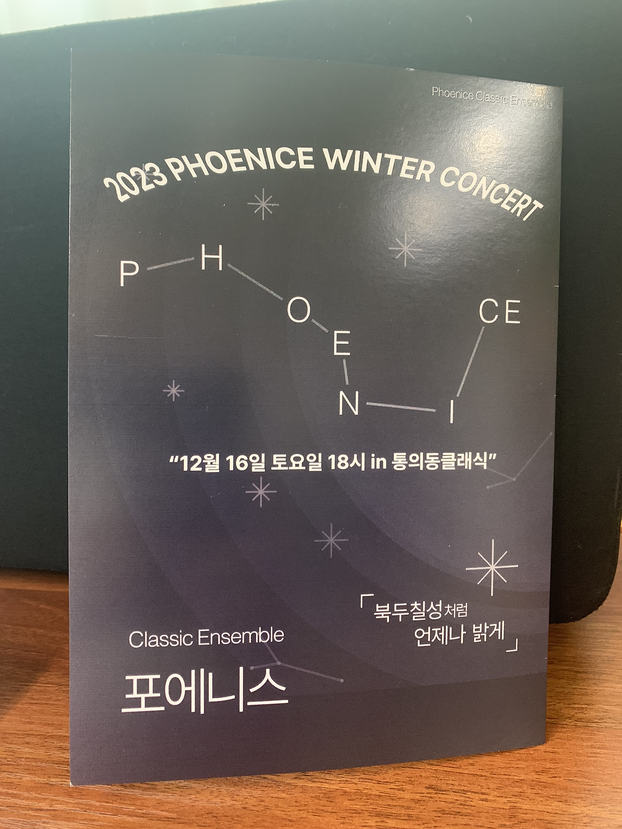 연주가 시작되고 남은 관객 좌석이 없어 우리는 연습하던 방에 앉아 1부를 보냈고, 2부 때는 연주회장 안쪽 방으로 이동해 대기했다. 내 차례가 뒤쪽이었지만 대기하는 동안 떨리지 않았다. 태권도 한 이후로 떨림이 확연히 줄었다. 내 차례가 되어 무대로 나갔다. 관객이 코앞까지 가득차 있었지만 당당하게 시작했다. 리허설 때 피아노 선생님이 빨리 나갔던 부분을 이번에도 빨리 들어가셔서 잠깐 당황했지만 바로 맞게 따라오셔서 고비를 넘겼다. 많은 연주자들의 반주를 혼자 하다 보니 힘드실 것 같았다. 무사히 연주를 마치고 귀여운 아이들의 캐럴과 바이올린 선생님 앙상블 포에니스(북두칠성이라는 뜻)의 멋진 연주를 보았다. 바이올린 소리가 너무 예뻤다.