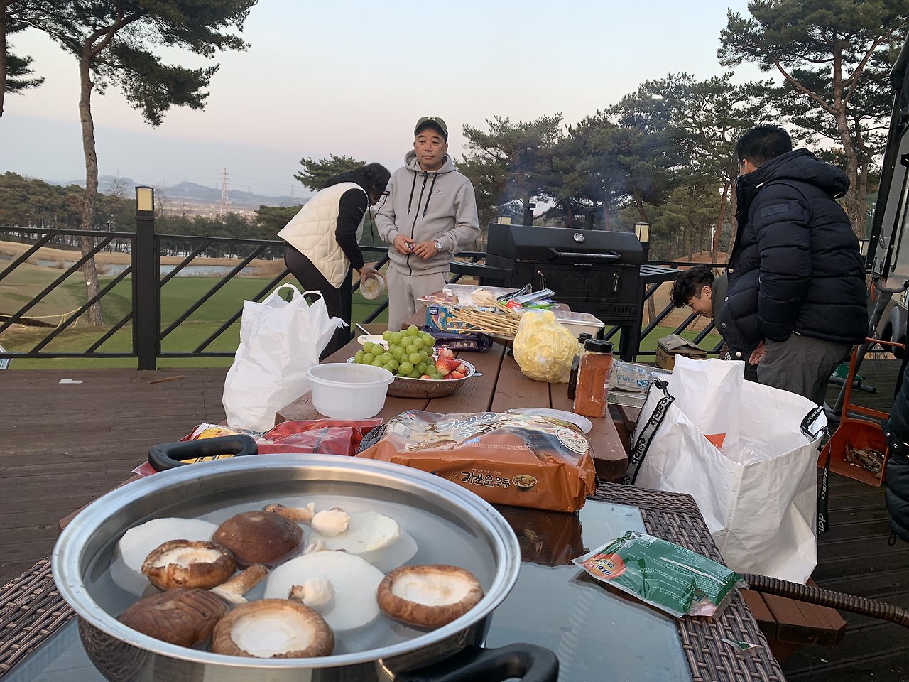 새해 첫날 남편의 고등학교 친구들 부부와 만났다. 미국에 사는 친구가 부인과 함께 우리나라에 들어오면서 며칠 전에도 식사를 함께한 적이 있었다. 미국 가기 전 골프장을 하는 후배의 배려로 골프장에 설치해 둔 카라반에서 바비큐 파티를 했다. 오후에 출발해서 이른 저녁을 먹기로 했다. 아침을 많이 먹어 점심을 건너뛰고 갔더니 출출했다.