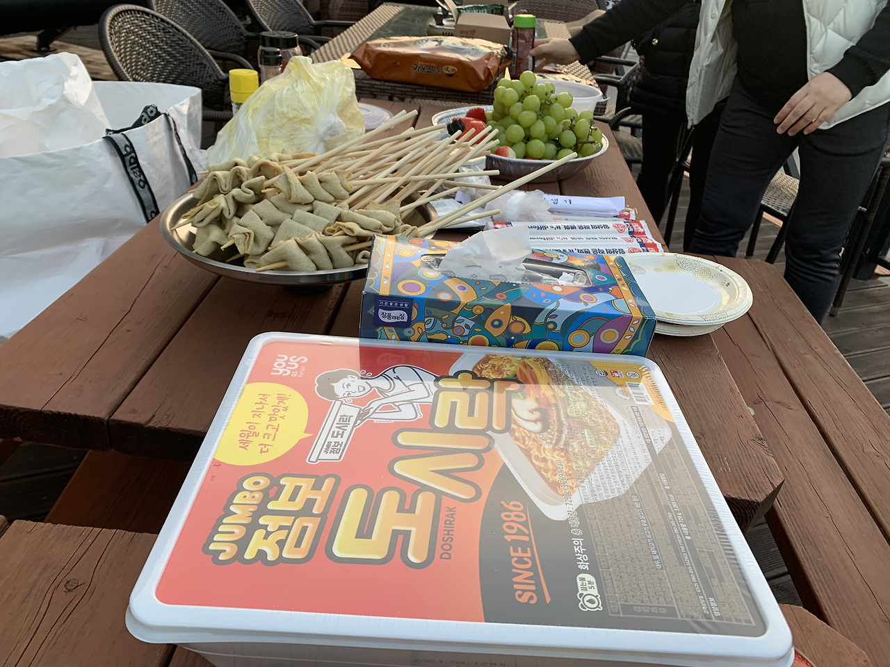 골프연습장은 가 본 적이 있지만 골프장은 태어나 처음이었다. 들어가진 않았지만 골프장이 바로 보이는 곳에 모임 장소가 있었다. 양고기도 처음 먹었다. 오래전 음식점에서 한점 먹어본 적은 있지만 뼈째로 먹은 건 처음이었다. 질길 거라고 생각했는데 굉장히 부드러웠다. 하나가 적정량이긴 했다. 부인들은 어묵과 우동, 라면을 끓이며 이야기를 나누고, 남편들은 고기를 구우며 석쇠 옆에 옹기종기 모여 있었다. 5시경부터 계속 쉴 틈 없이 먹었더니 배가 너무 불렀다. 추운데 앉아 먹으니 계속 들어가는 모양이다. 하루 종일 먹을 걸 잠깐 사이에 먹은 느낌이었다. 4도의 기온(냉장실 온도)에 몇 시간 밖에 있으니 아무것도 하지 않았는데도 굉장히 피곤했다.