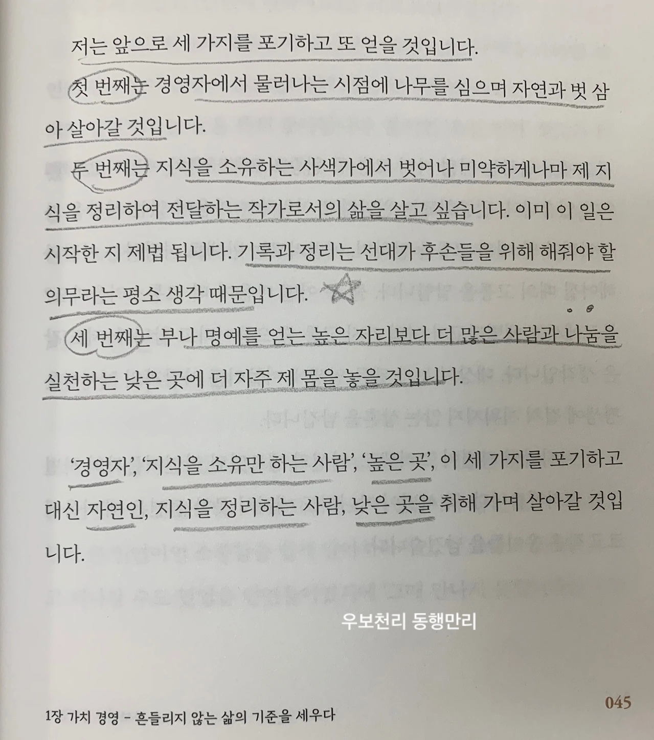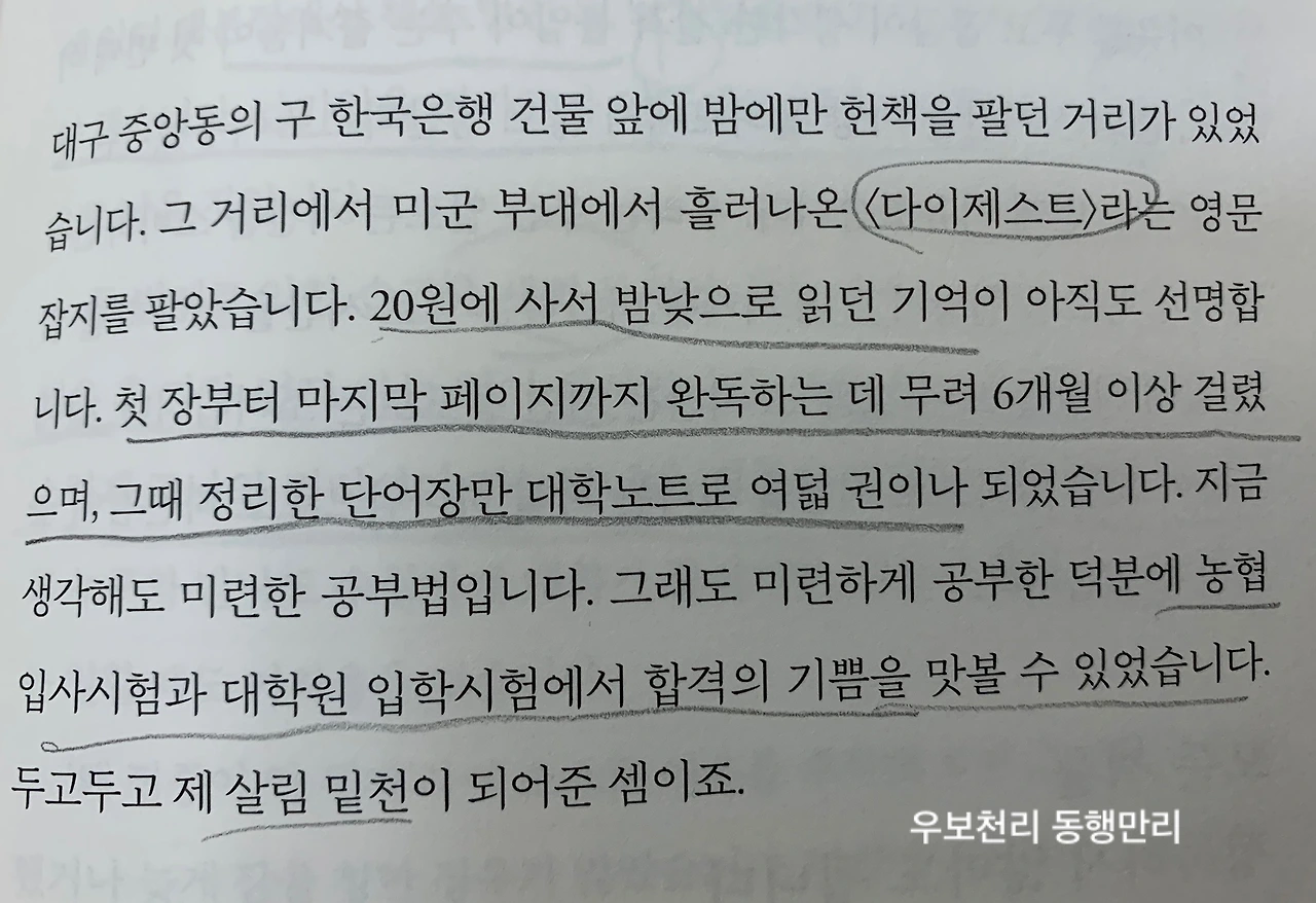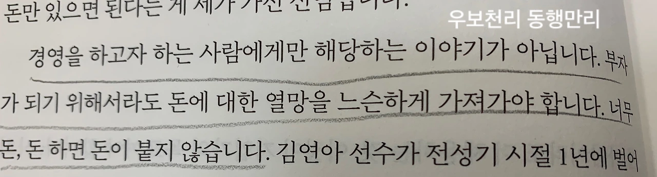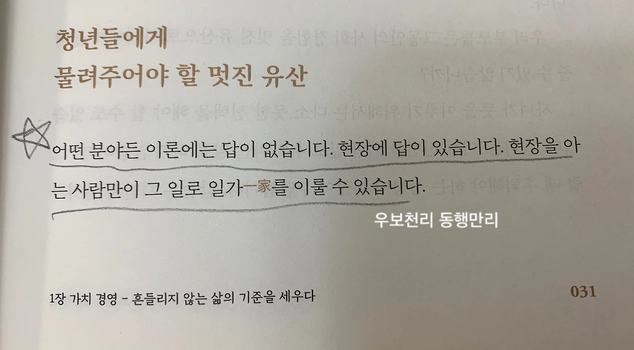 책을 재미있게 읽고 리뷰를 쓰려고 표지를 자세히 보니 책상에 놓인 물건이 독특하다. 아주 오래전 초등학교 때 잠깐 다녔던 주산암산 학원에서 사용하던 주판이 놓여 있었다. 책을 읽을 수 있는 독서대와 아담한 금색 연필꽂이, 연세를 짐작할 수 있는 돋보기와 클립에 끼워진 두거운 종이 뭉치. 표지 사진이라 다 치우고 깨끗한 채상에 앉아 폼 잡고 찍을 만도 한데 그의 책 속에 나오는 소탈하고 겸손한 회장님의 마음이 그대로 드러나는 듯했다. 가감 없이 보여주는 그의 사진처럼 책 내용도 그러했다.