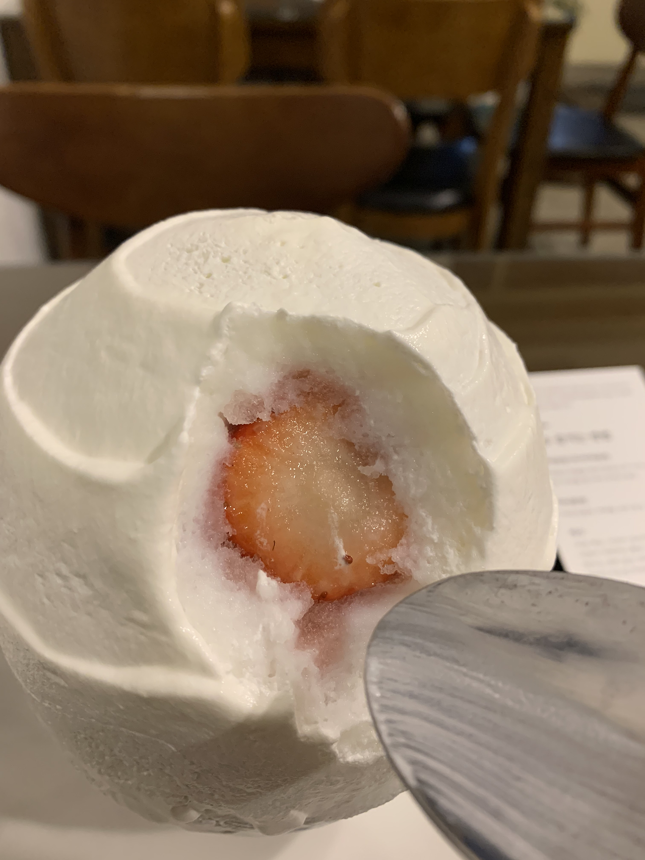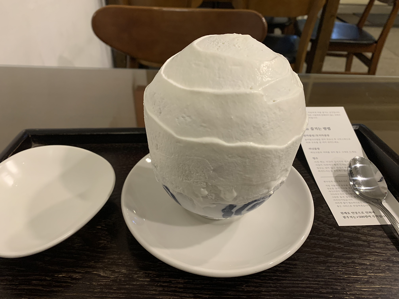 맹그로브는 지난여름 그대로였다. 겨울 바다는 더 아름다웠다. 묵었던 그 방 위쪽 침대가 내 자리였다. 여름에는 블라인드가 쳐져 있었는지 바다가 보이지 않았는데 이번에는 누운 자리에서 바로 바다가 보이니 더 좋았다. 몸을 잠깐 뉘었다가 저녁을 먹으러 속초로 갔다. 어딘가에서 보았던 딸기빙수를 기억을 더듬어 검색해 찾아냈다. 근처에서 저녁을 먼저 먹으려고 감자옹심이를 찍고 갔는데 시장 안인 데다가 문을 닫아 먹지 못하고 바로 카페로 갔다. 카페 옆 식당은 일찍 문을 닫았고 근처에 먹을만한 곳이 없어 바로 안으로 들어갔다. 평일이라 그런지 아무도 없었다. 딸기빙수가 있다기에 반가운 마음으로 시키고 앉아 책을 읽었다. 빙수는 생각보다 달지 않아 맛이 좋았다. 계속 먹다 보니 춥고 기침이 나긴 했지만 끝까지 맛있게 먹었다.