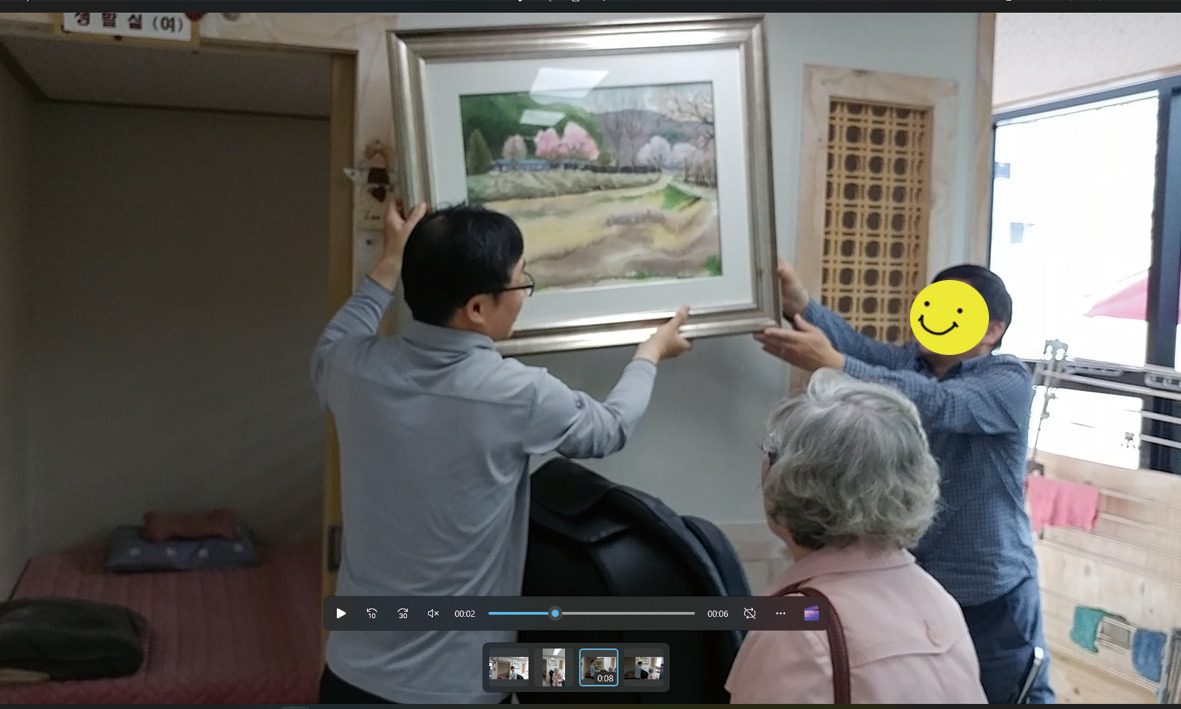 "보호자님 아무래도 그림을 다시 가져가는 게 좋겠어요. 오늘은 우리가 도둑이라고, 경찰에 신고하시겠다고 할 정도로 화를 내셨어요. 어르신 심리적인 안정을 위해서 그렇게 하는 게 좋겠습니다."