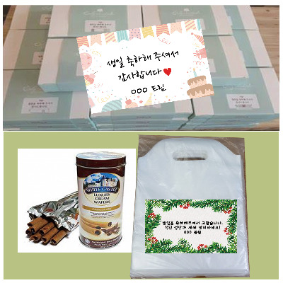 그리고 형편이 되는대로 어르신들과 선생님들이 함께 드실 간식을 준비해 드렸다. 어머니 어깨가 으쓱해지기를 바라는 사심을 가득 담아 선물 위에 따로 스티커를 붙여서 보내기도 했다.
