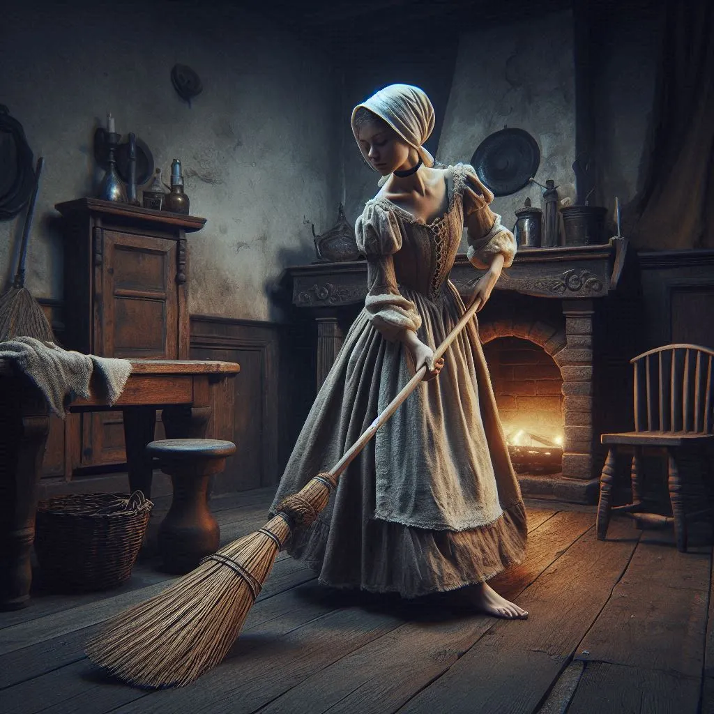 신데렐라가 어렸을 때 부모님을 잃고 계모와 이복 언니들과 살게 되었을 때, 그녀는 항상 묵묵히 그들의 요구를 들어주고 집안일을 했다. 계모는 신데렐라를 하녀처럼 부렸지만, 그녀는 그 상황에 순응하며 자신의 일을 성실하게 해냈다.