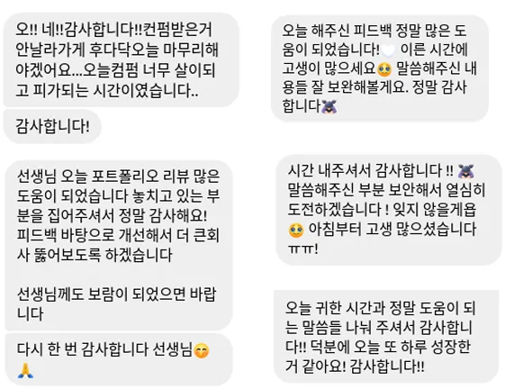 저에게도 좋은 피드백 해주시는 분들께 진심으로 감사드립니다 (저는 선생님은 아니긴 합니다)