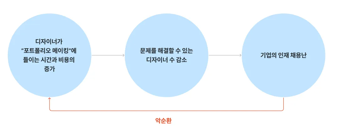 이러한 악순환을 발생시키고 가속화하는 원인은 디자이너를 채용할 때 포트폴리오 평가에 전적으로 의존하는 기업의 인재 평가 방식에 있습니다.