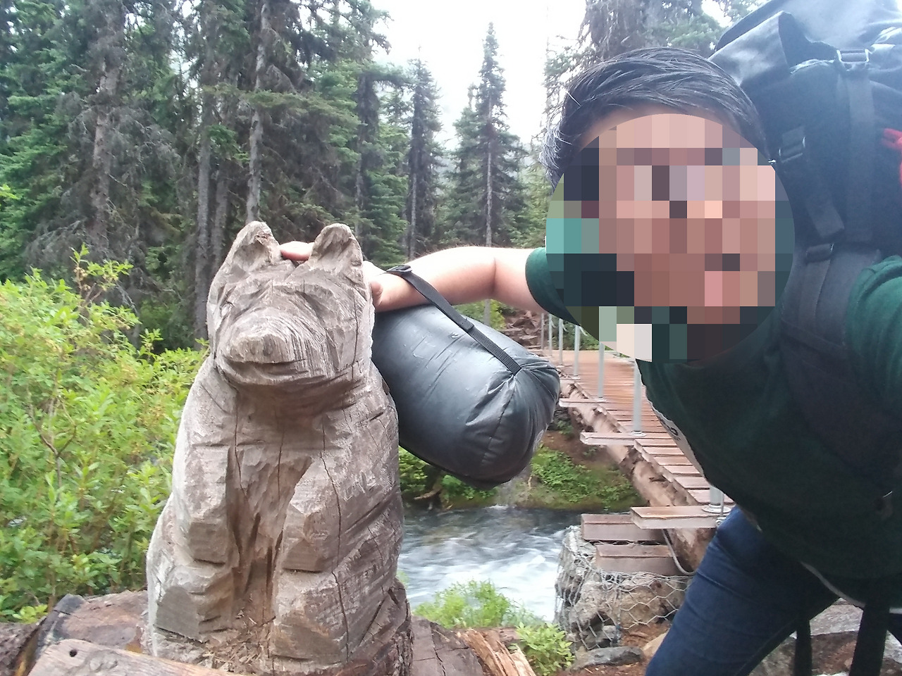 당시 어퍼로 향하는 다리를 건너며 만난 곰 조각상과 찍은 사진이다. 머리 빼고는 잘 안 보여도 상태는 꽤나 볼만했다. 나름 고생했다. 비와 자연에 가려져 깜박했지만, 몸은 조금씩 지쳐가고 있었다.