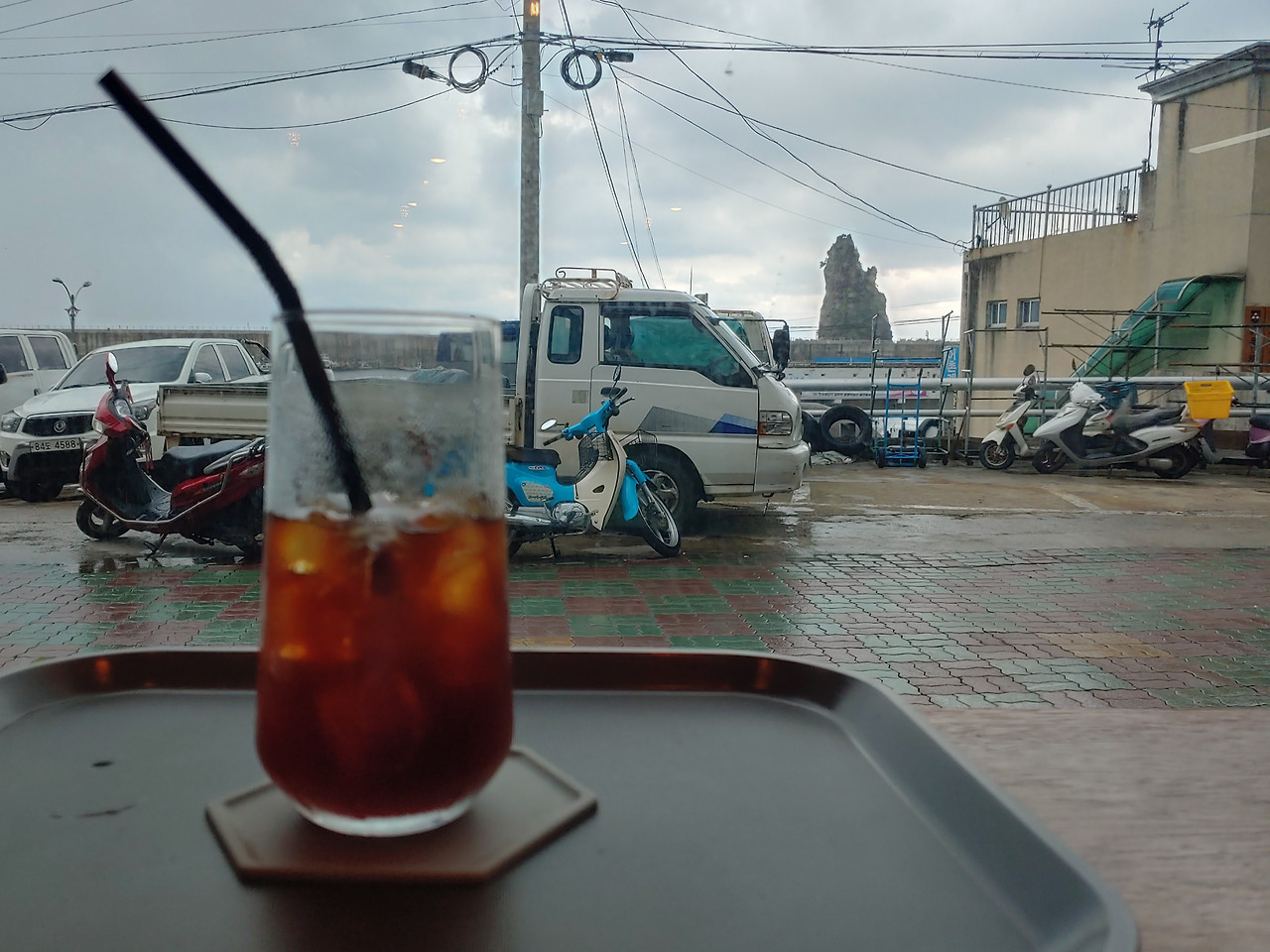 그렇게 바다를 바라보며 조금의 시간이 지나면 저 멀리서 버스가 다가왔다. 버스를 타고 저동항으로 넘어가 바다와 울릉도의 시내가 한눈에 들어오는 카페 창가에 앉았다. 지나가는 차들과 바다를 보며, 때로는 비 오는 울릉도의 시내를 구경하며 시간을 보냈다. 휴식이 필요했던 나에게 너무 온전하게 여유로운 시간이었다.